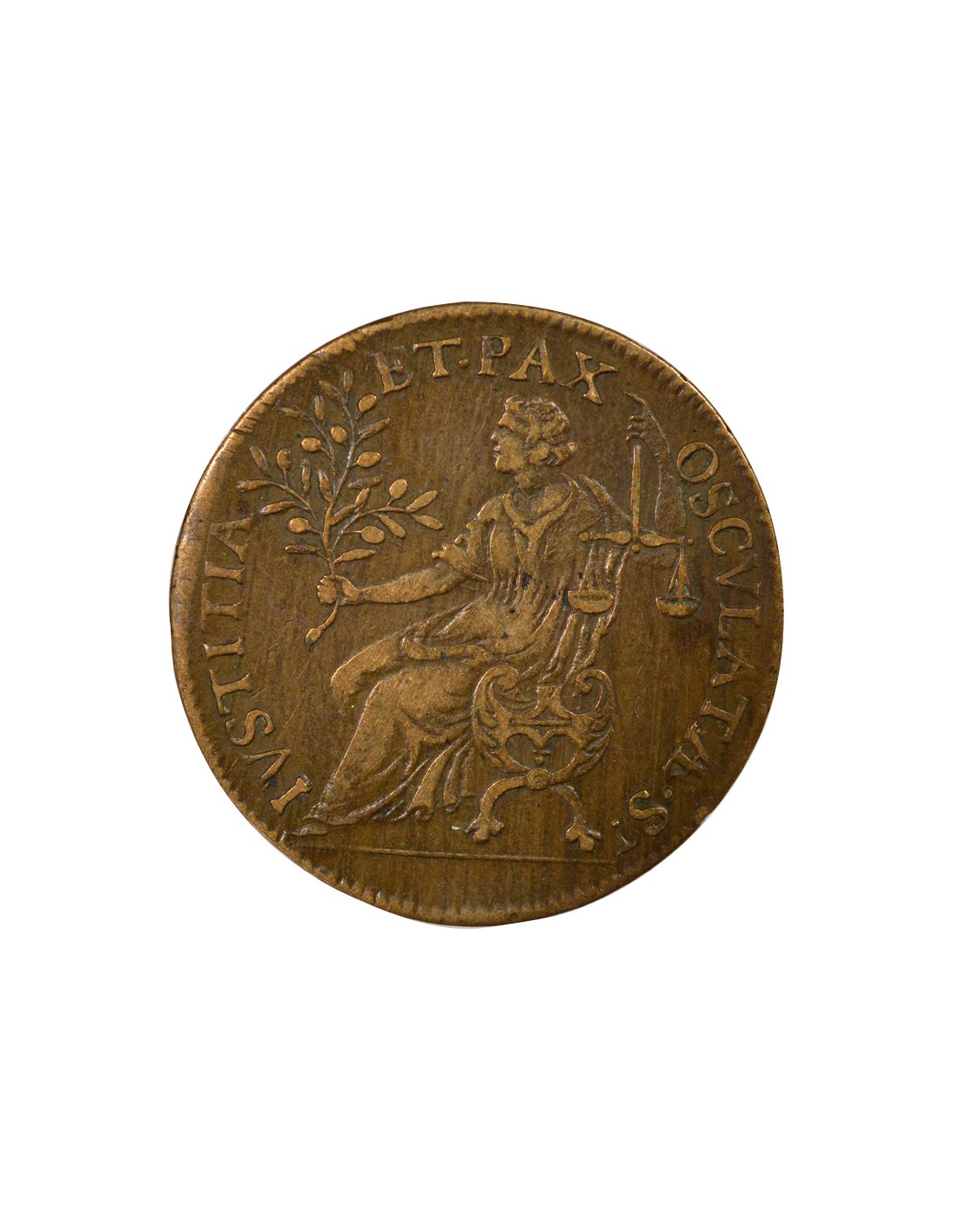 Revers : IVSTITIA - ET . PAX - OSCVLATAE . ST.
