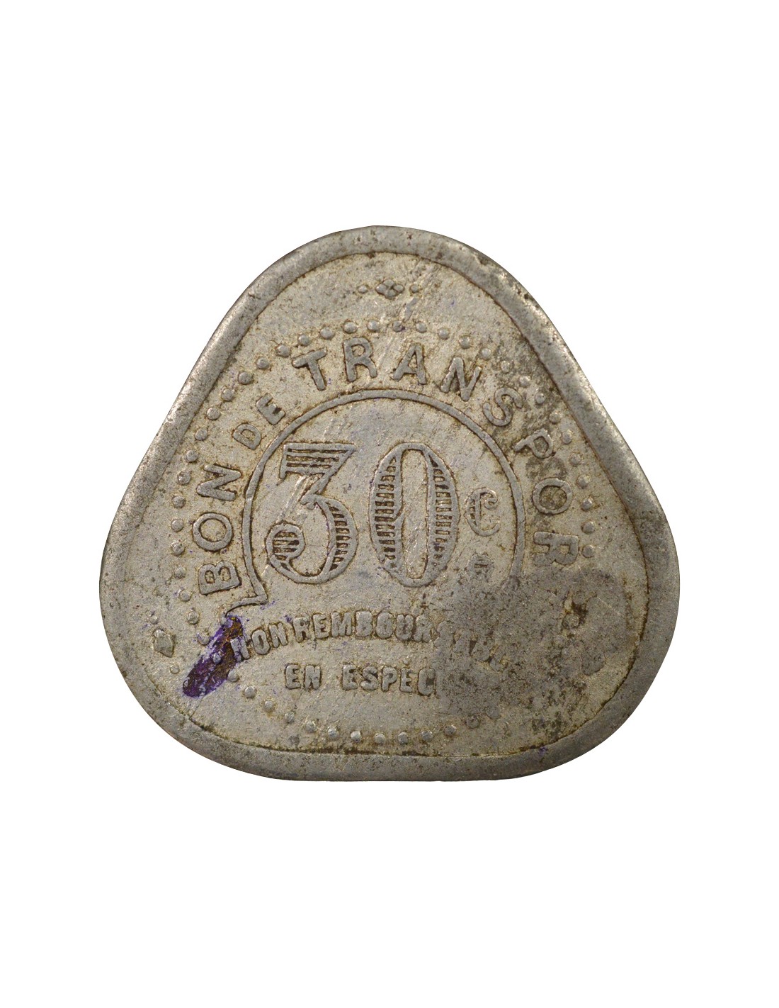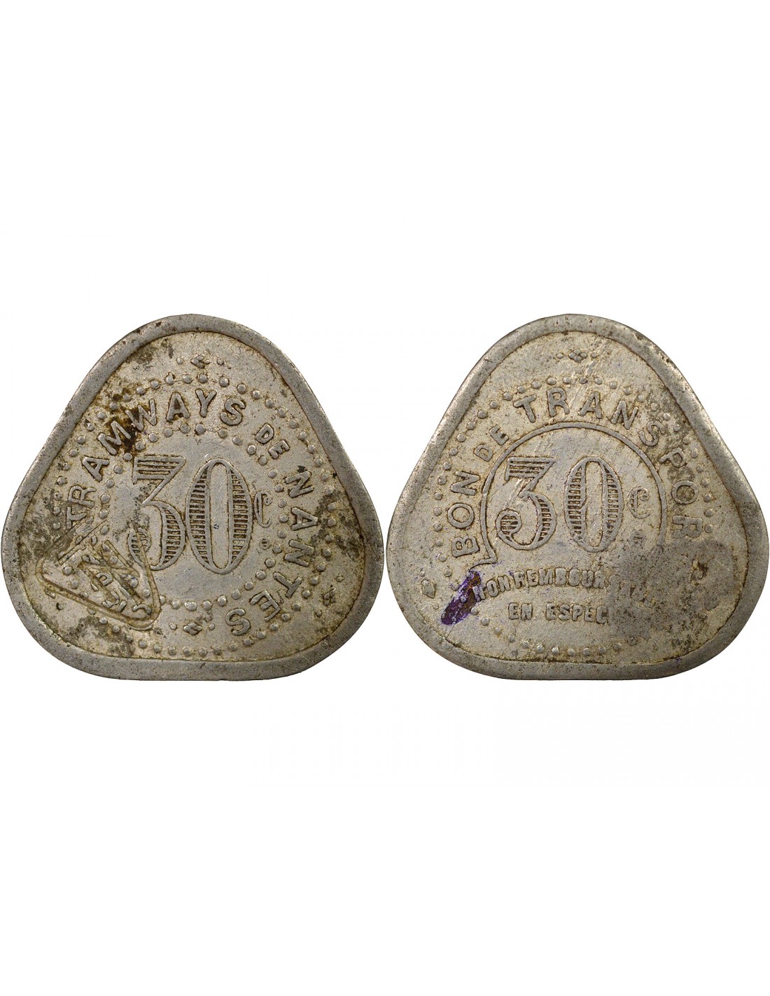 France Nécessite, Tramways de Nantes - 30 Centimes Aluminium - Composté