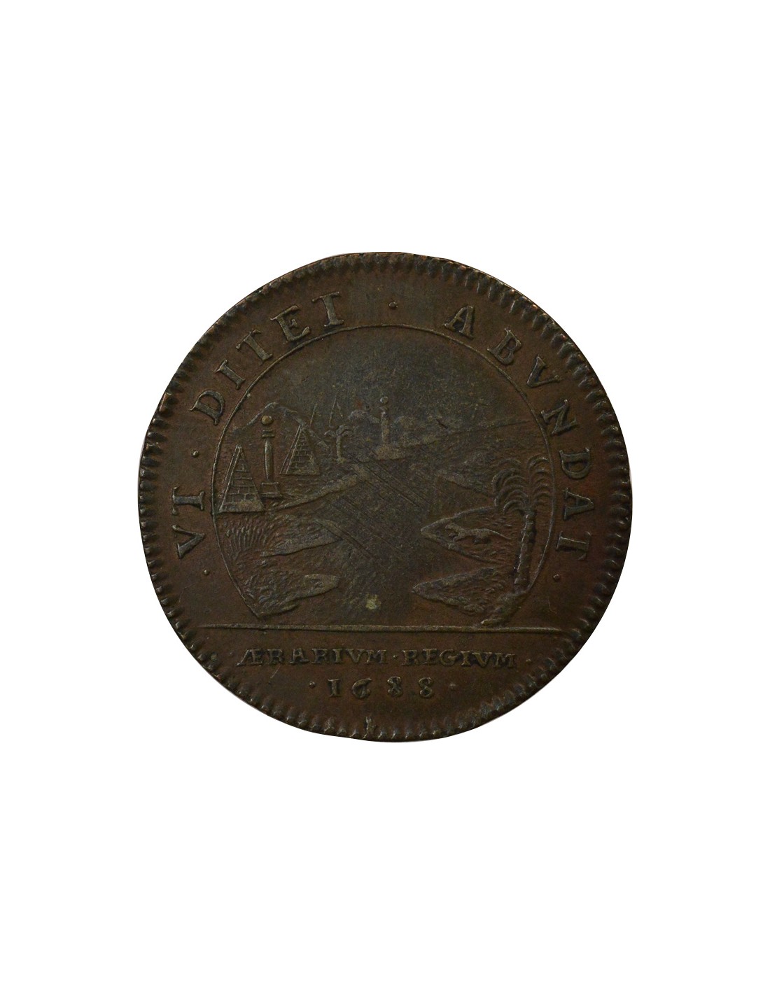 Revers : . VT . DITET . ABVNDAT . / AERARIVM . REGIVM . / . 1688 .Revers représentant la crue du Nil.