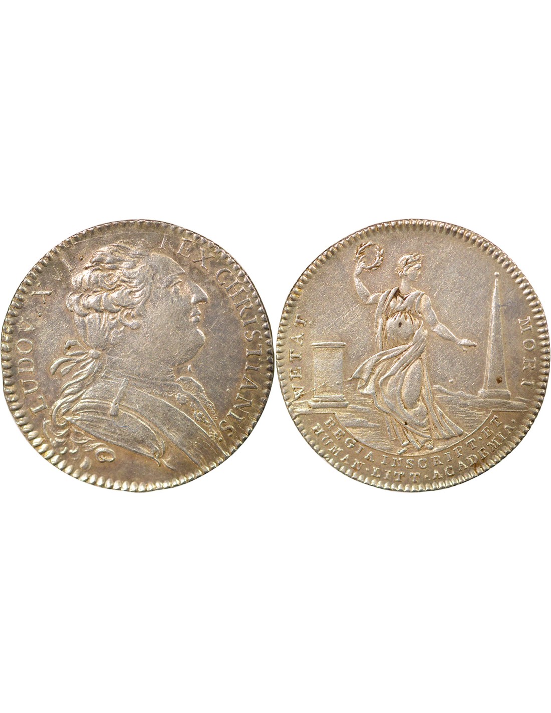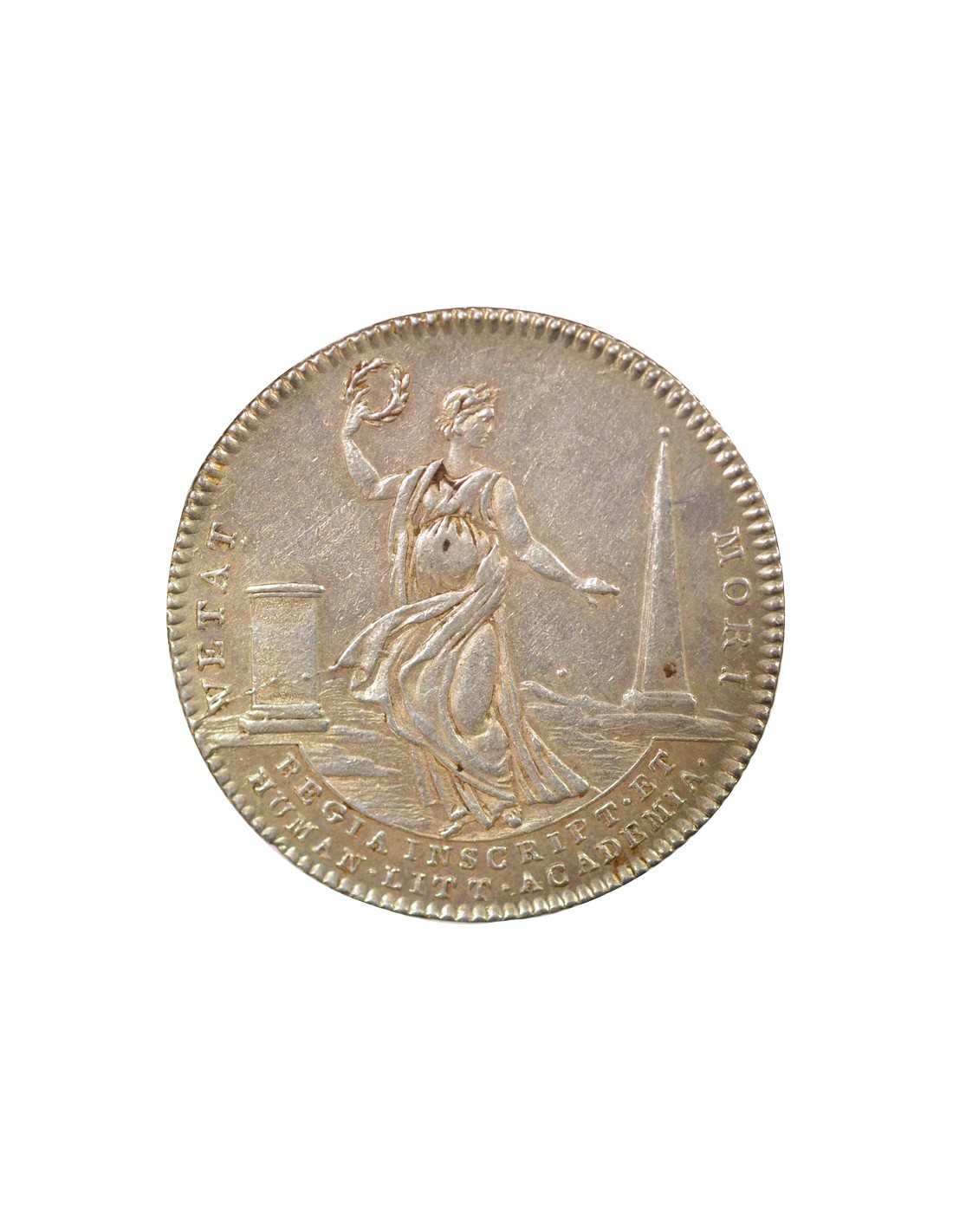 Revers : VETAT MORI / REGIA . INSCRIPT . ET / HUMAN . LITT . ACADEMIA .