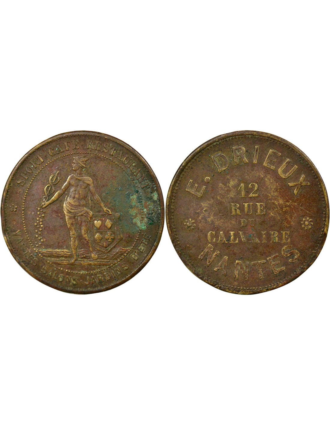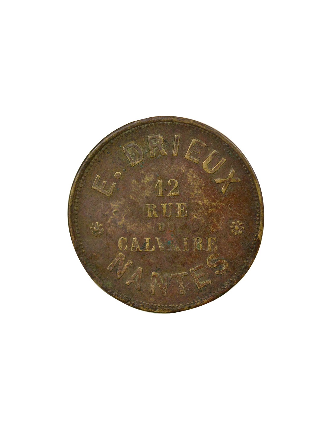 Revers : E . DRIEUX / 12 / RUE / DU / CALVAIRE / * NANTES *