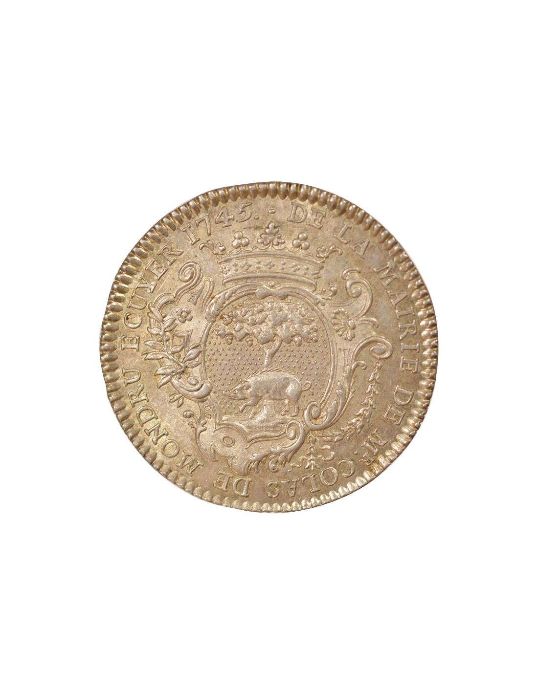 Avers : . DE LA MAIRIE DE MR. COLAS DE MONDRU ECUYER 1745 .