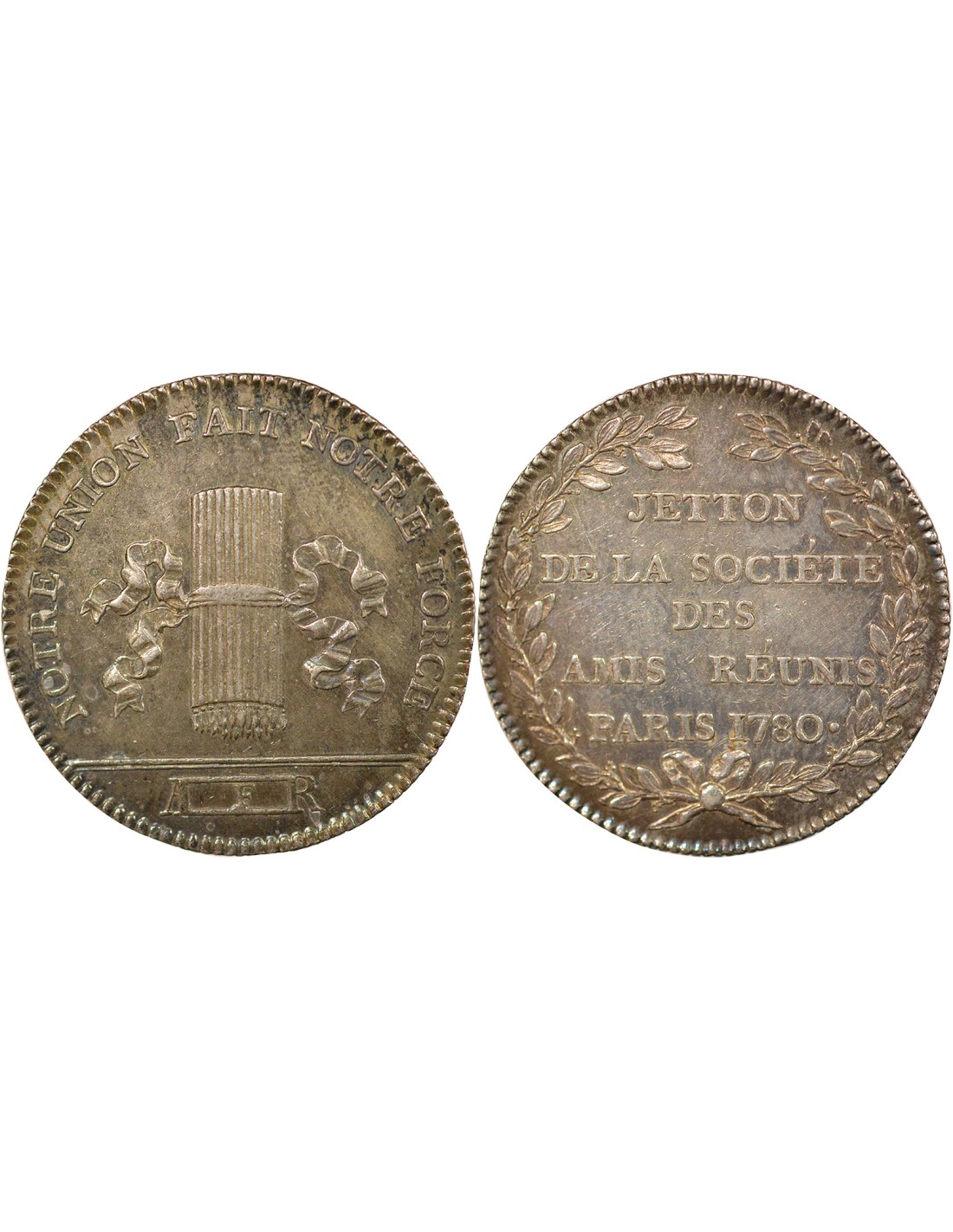 Revers : JETTON / DE LA SOCIETE / DES / AMIS REUNIS / PARIS 1780 .