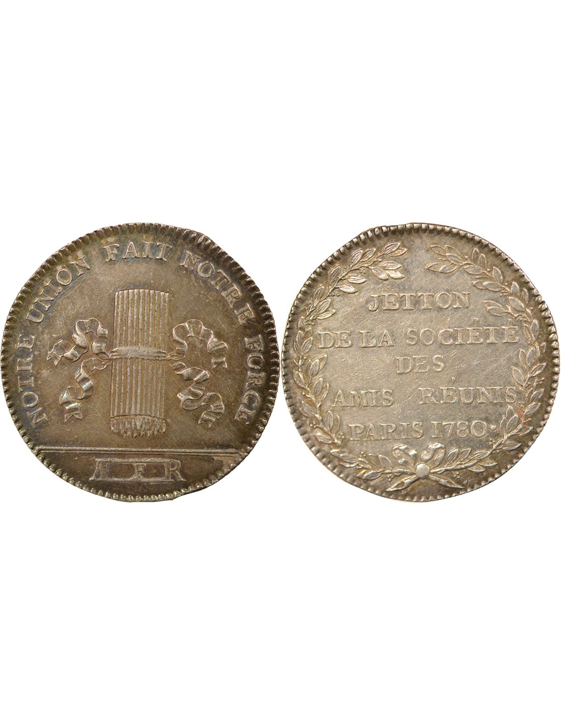 Revers : JETTON / DE LA SOCIETE / DES / AMIS REUNIS / PARIS 1780 .
