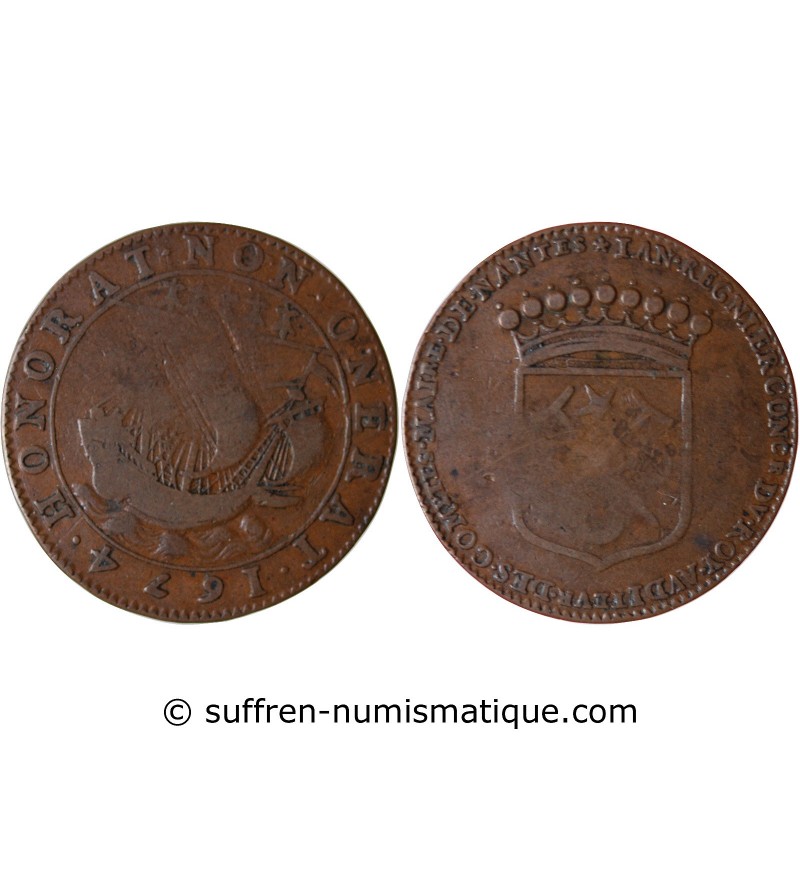 La Mairie de Nantes fut installée en 1565 après avoir été créée par François II en 1560 avec le droit d'élire ses échevins. Les premiers jetons ne portent pas le nom du maire ce sont des jetons d'échevinage. Les armoiries apparaissent en 1637.