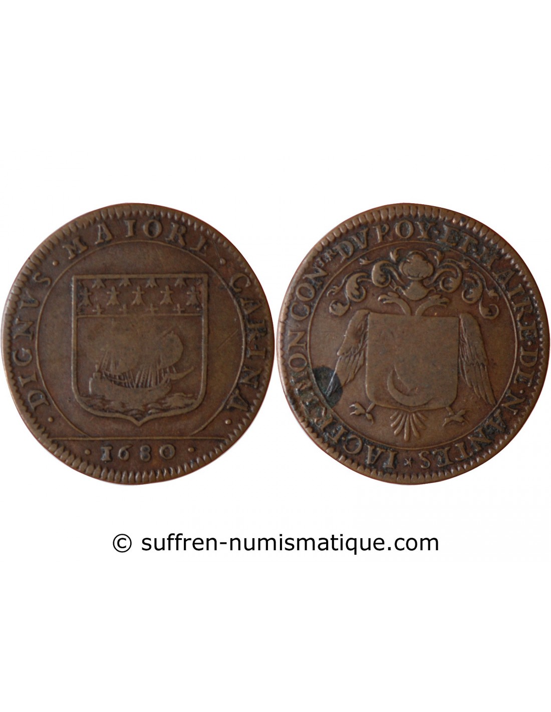 MAIRE DE NANTES - JACQUES FREMON, SIEUR DU BOUFFAY JETON CUIVRE 1680