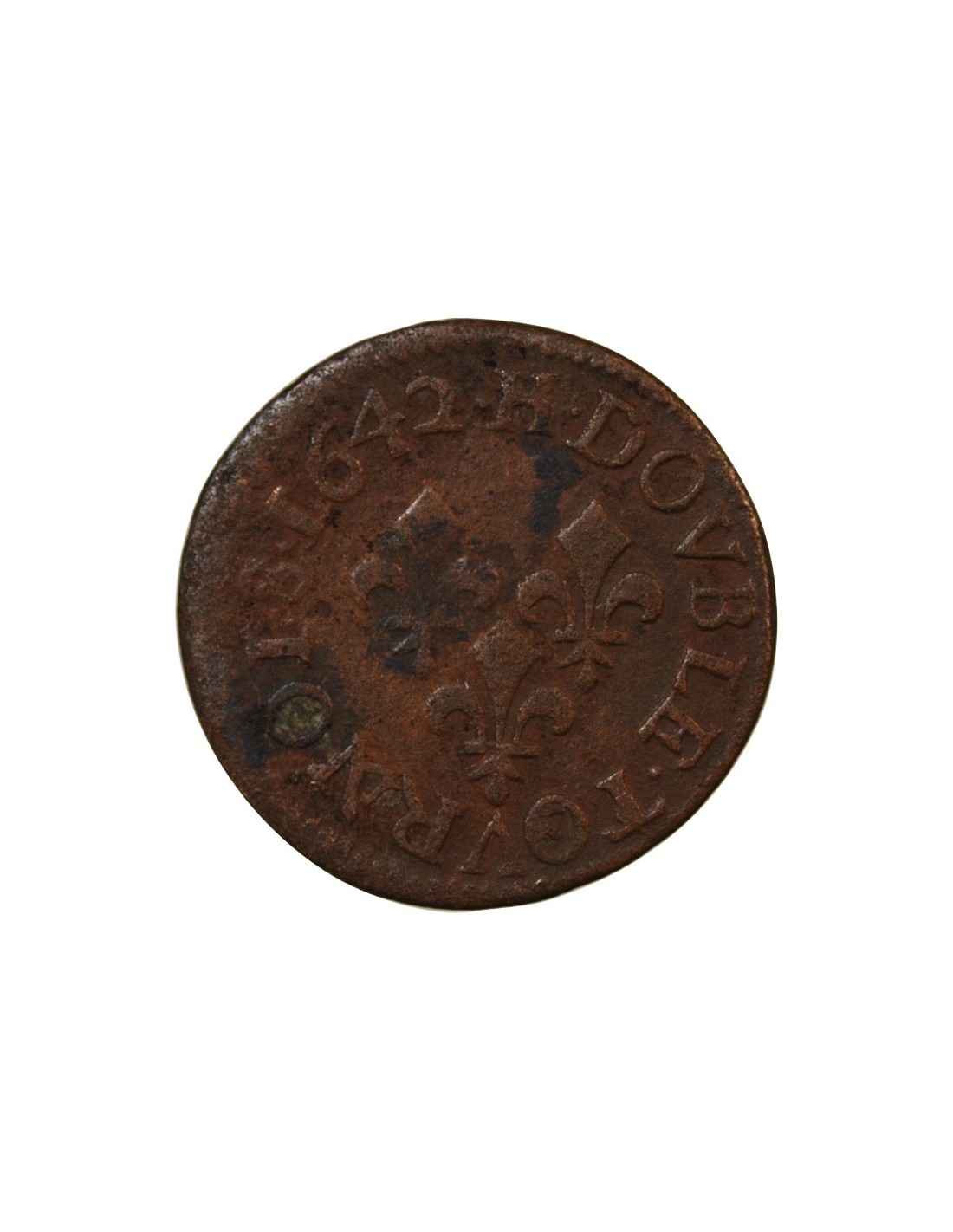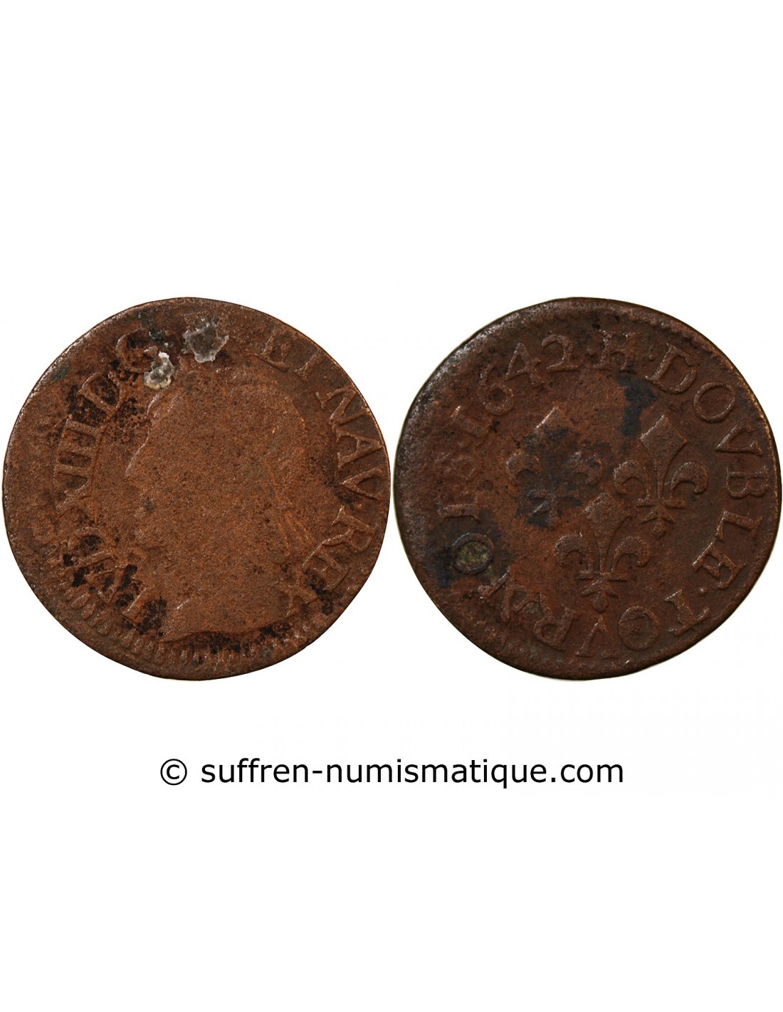 LOUIS XIII - DOUBLE TOURNOIS 1642 H LA ROCHELLE