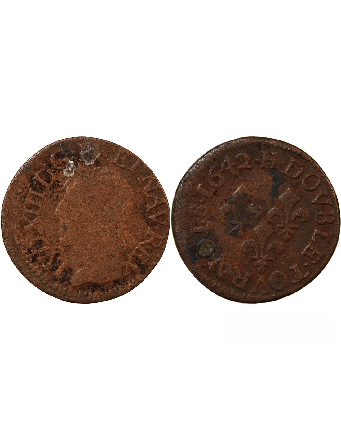France LOUIS XIII - DOUBLE TOURNOIS 1642 H LA ROCHELLE