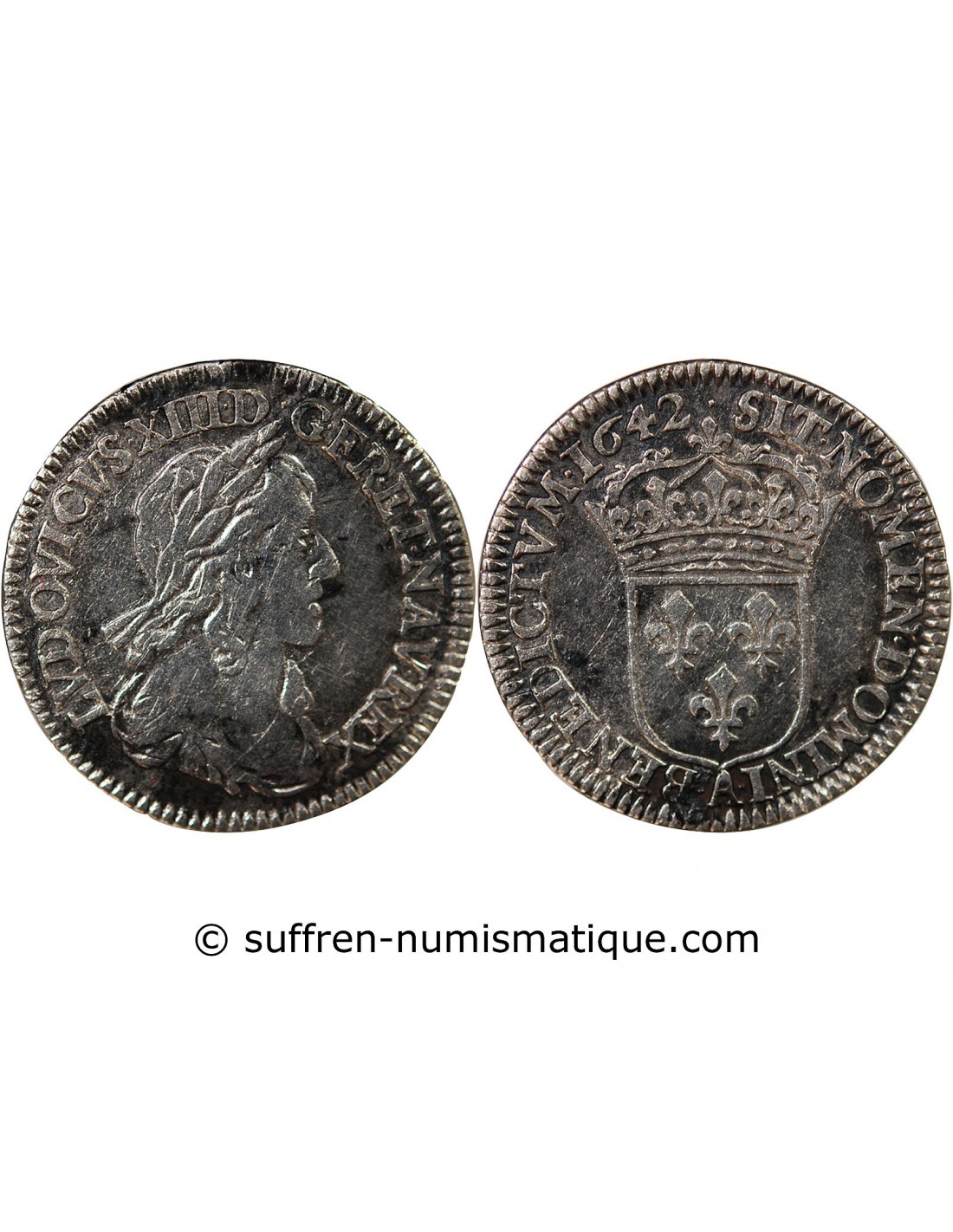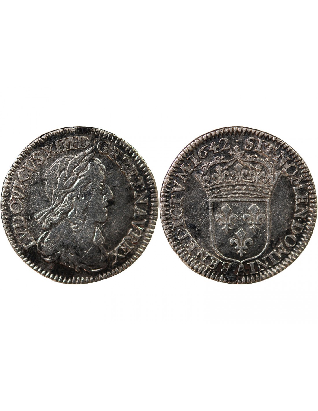 LOUIS XIII - 1/12 ECU ARGENT 1642 A PARIS point - 2e Poinçon de Warin