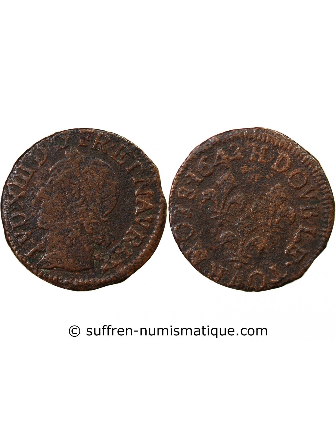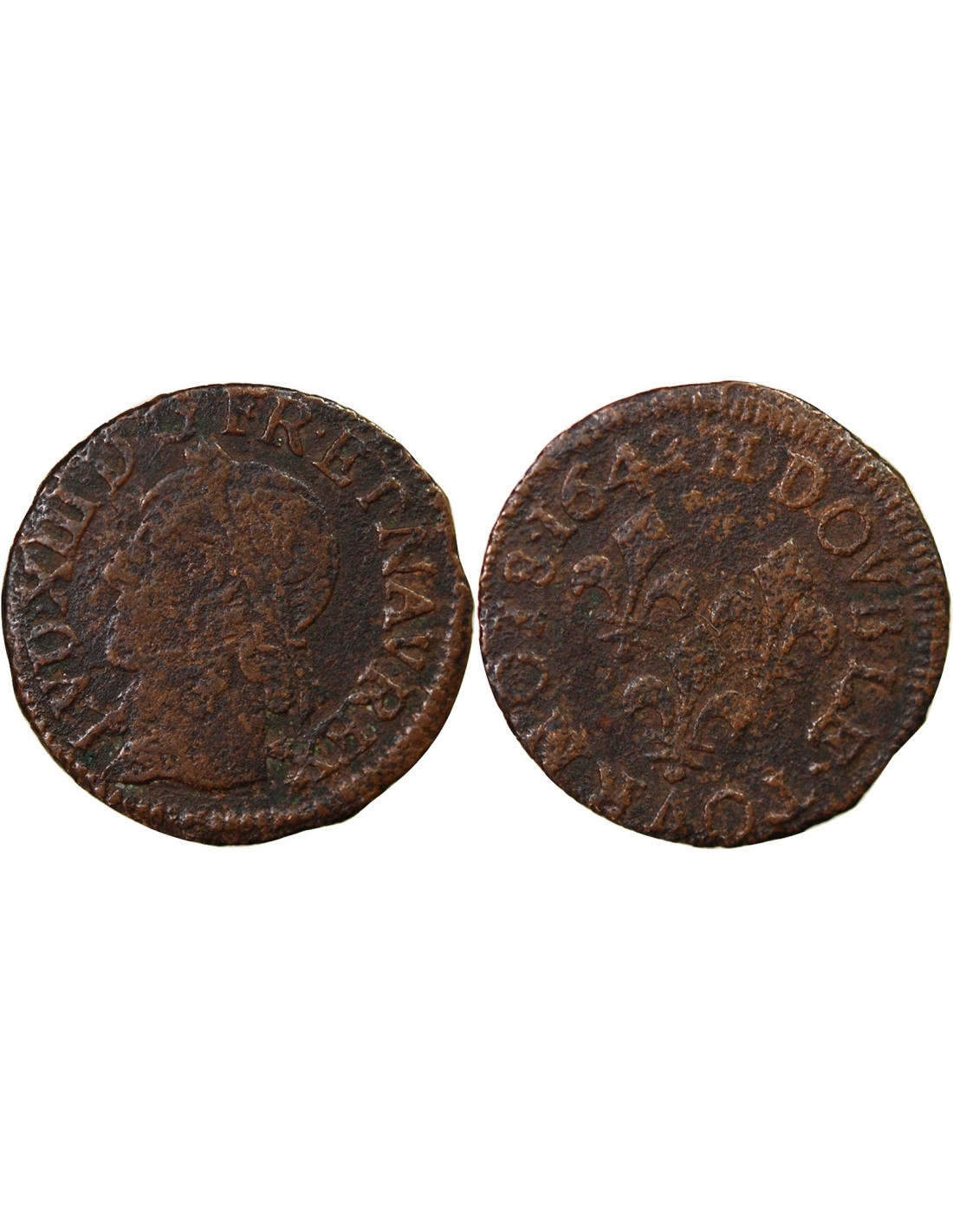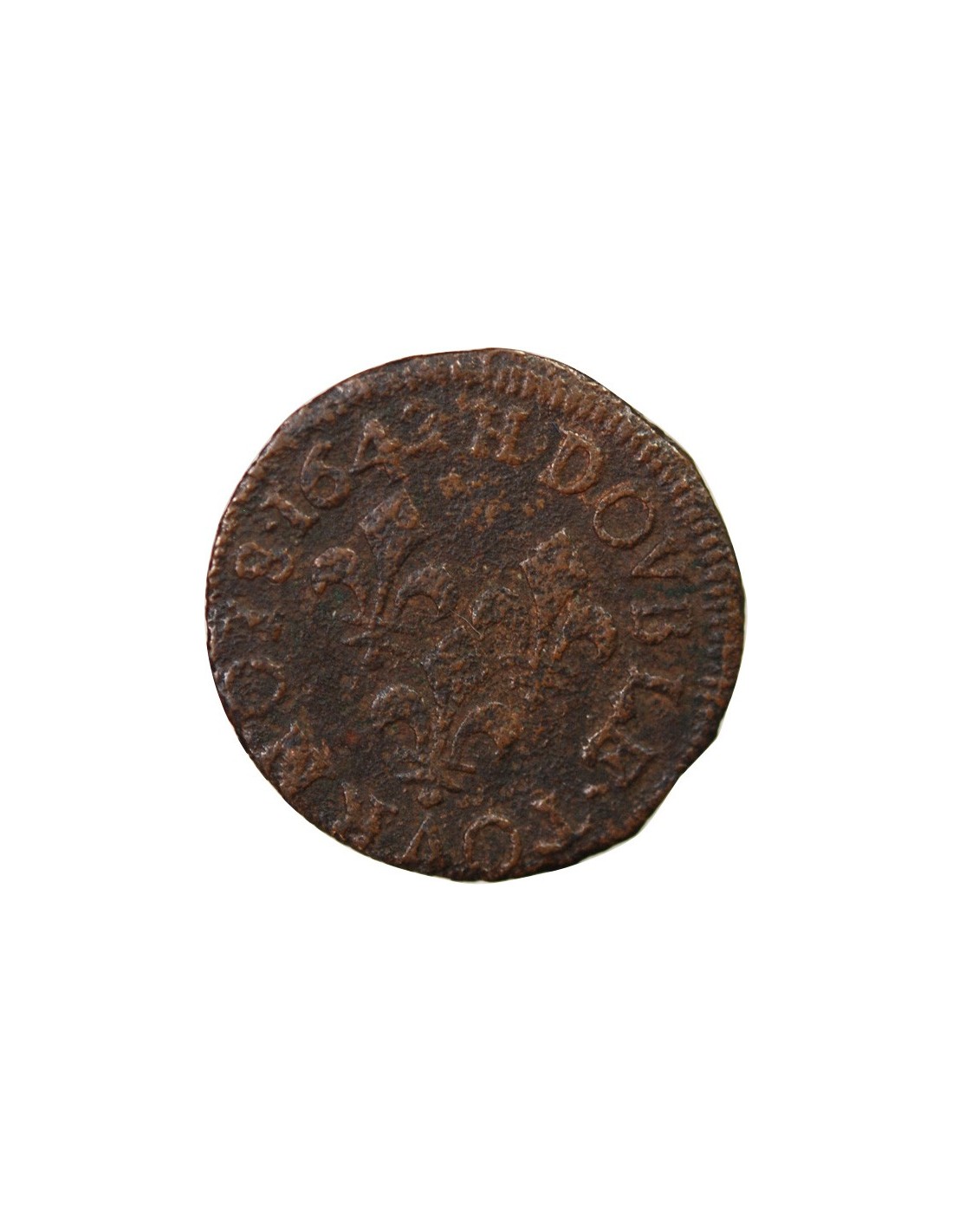 LOUIS XIII - DOUBLE TOURNOIS 1642 H LA ROCHELLE