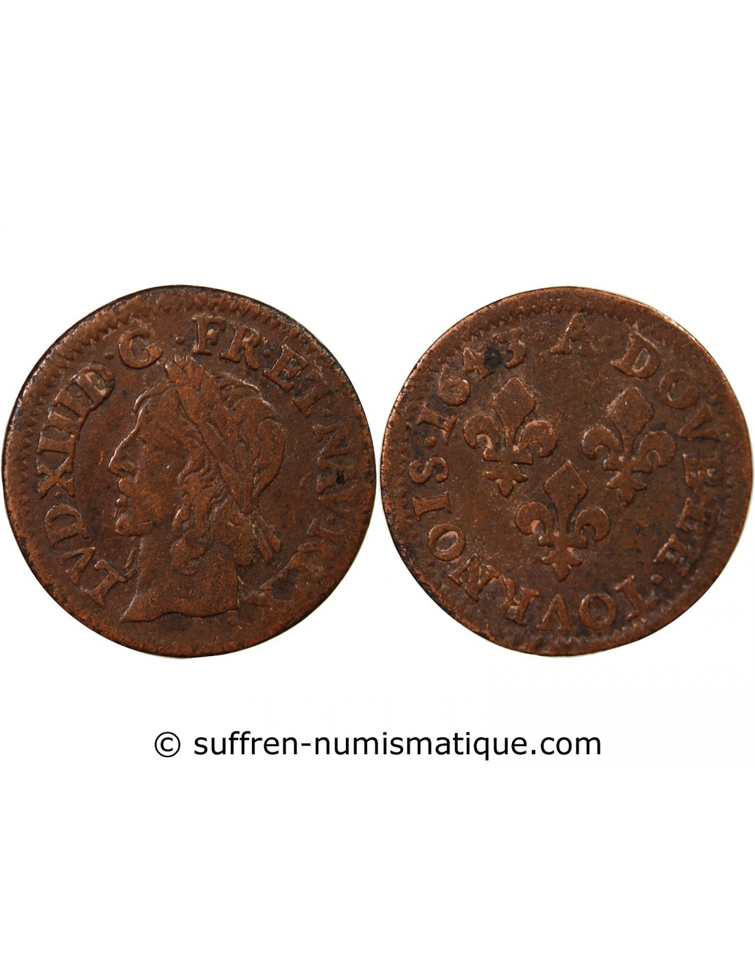 LOUIS XIII - DOUBLE TOURNOIS 1643 A CORBEIL