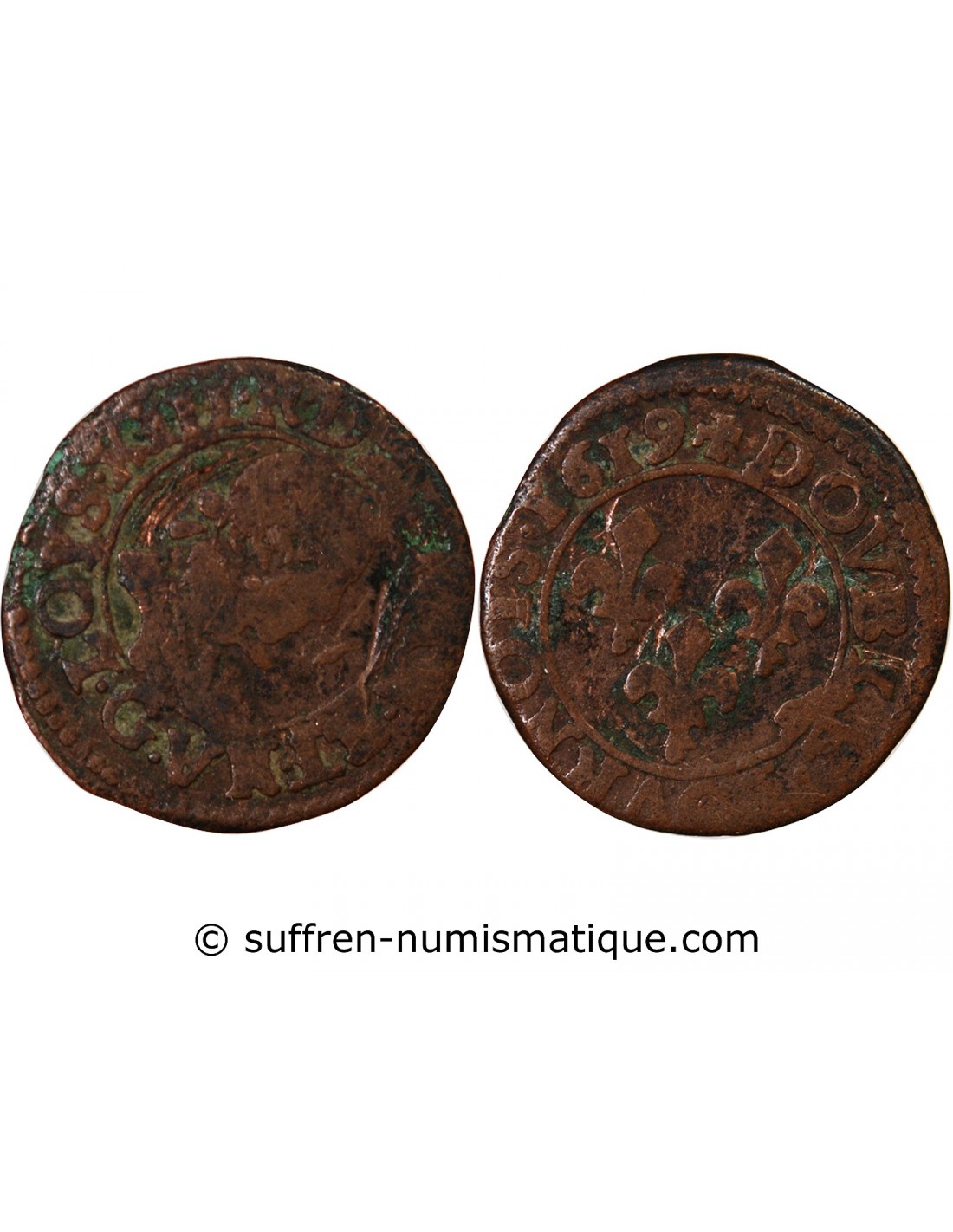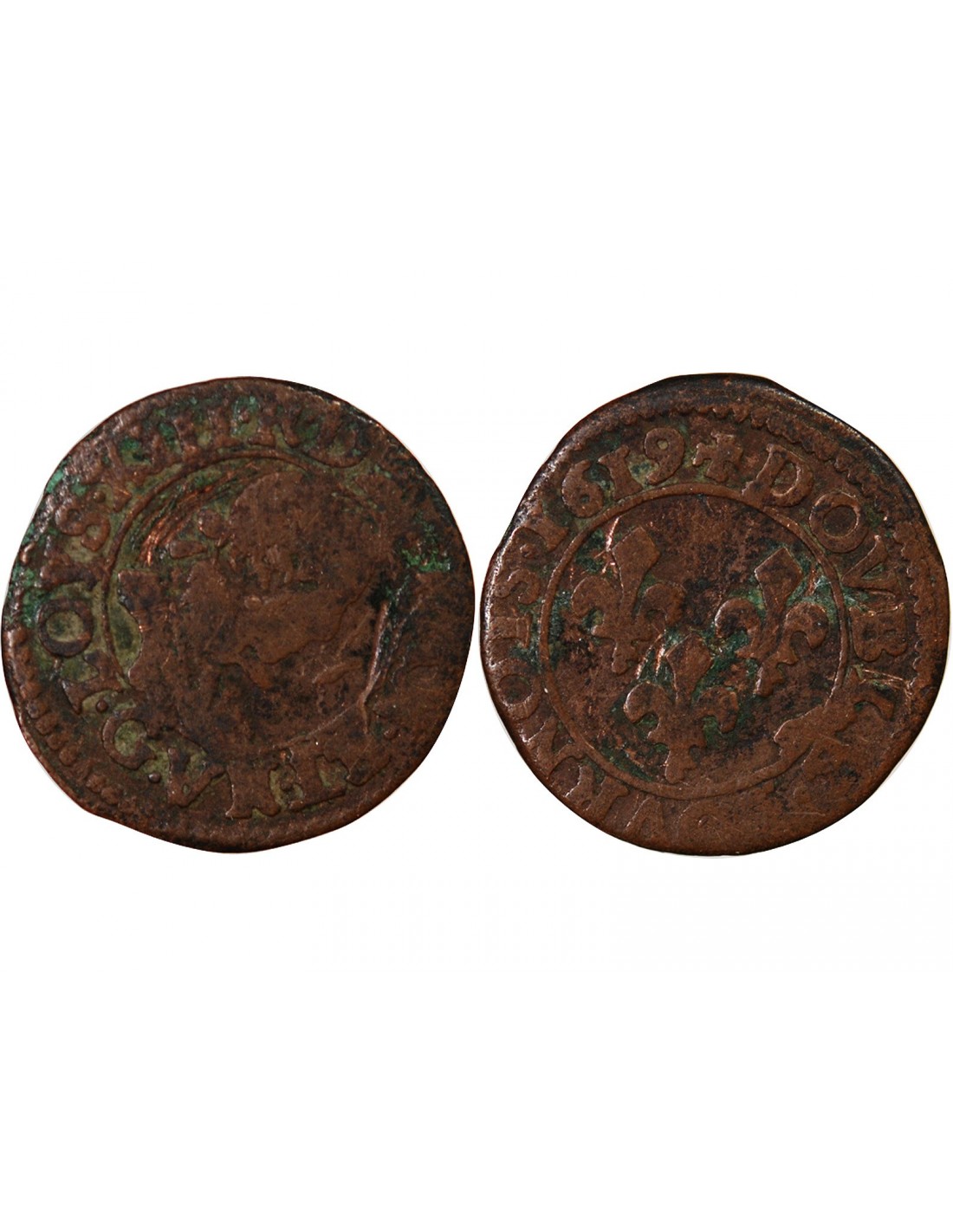 LOUIS XIII - DOUBLE TOURNOIS 1619 G POITIERS