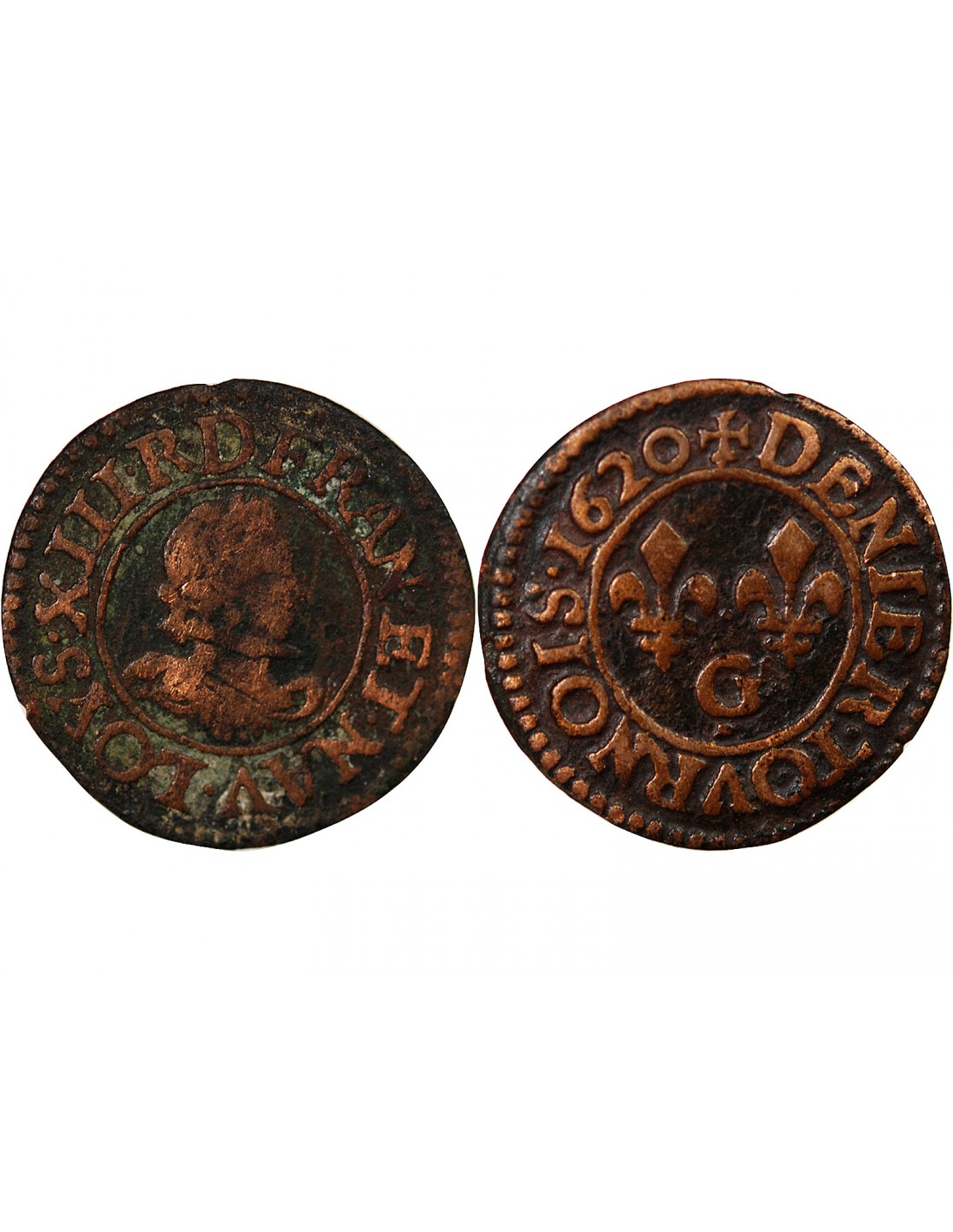LOUIS XIII - DENIER TOURNOIS 1620 G POITIERS