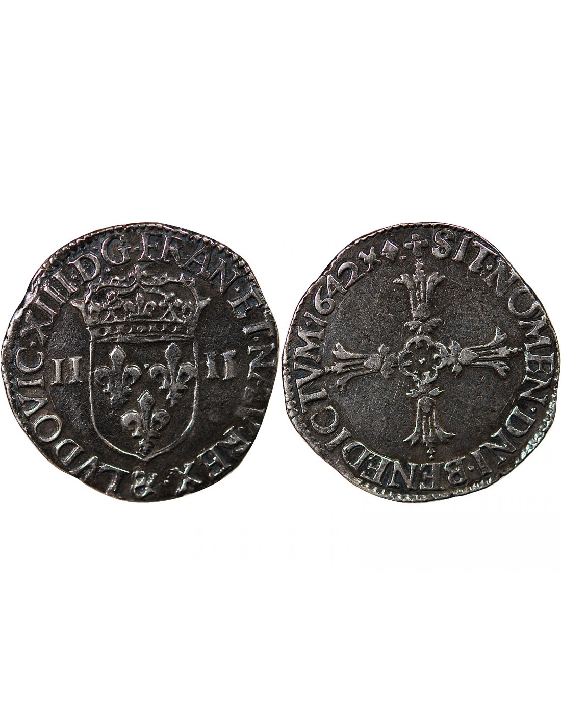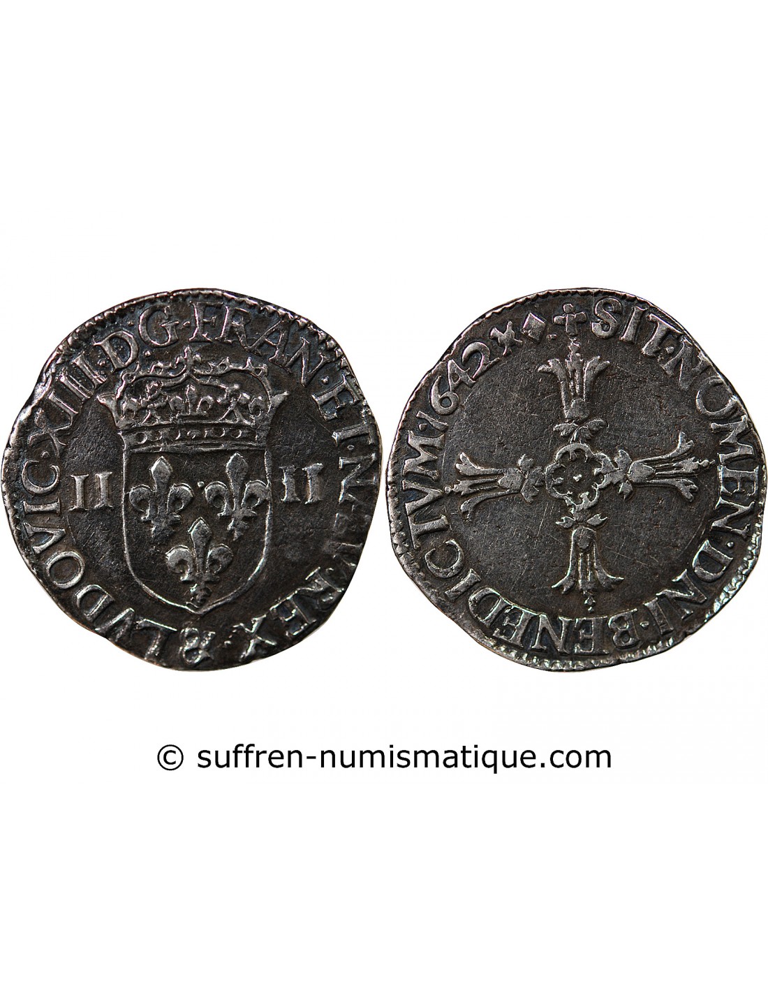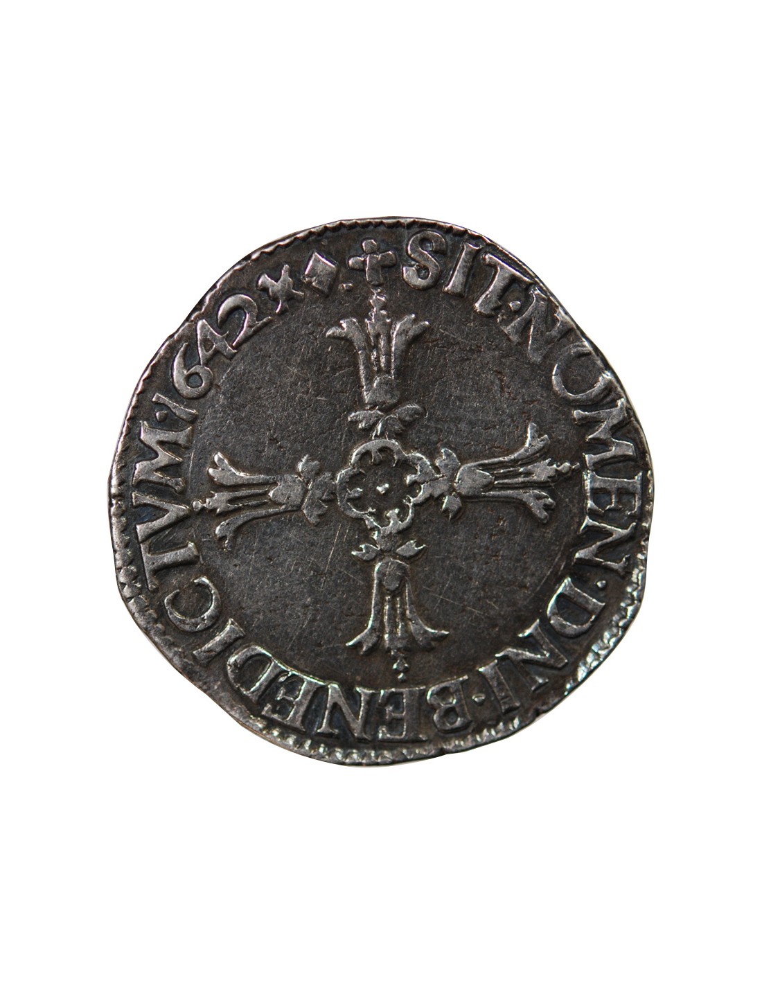 LOUIS XIII - 1/4 ECU AU REVERS A LA CROIX FEUILLUE, 1642 AIX EN PROVENCE R3