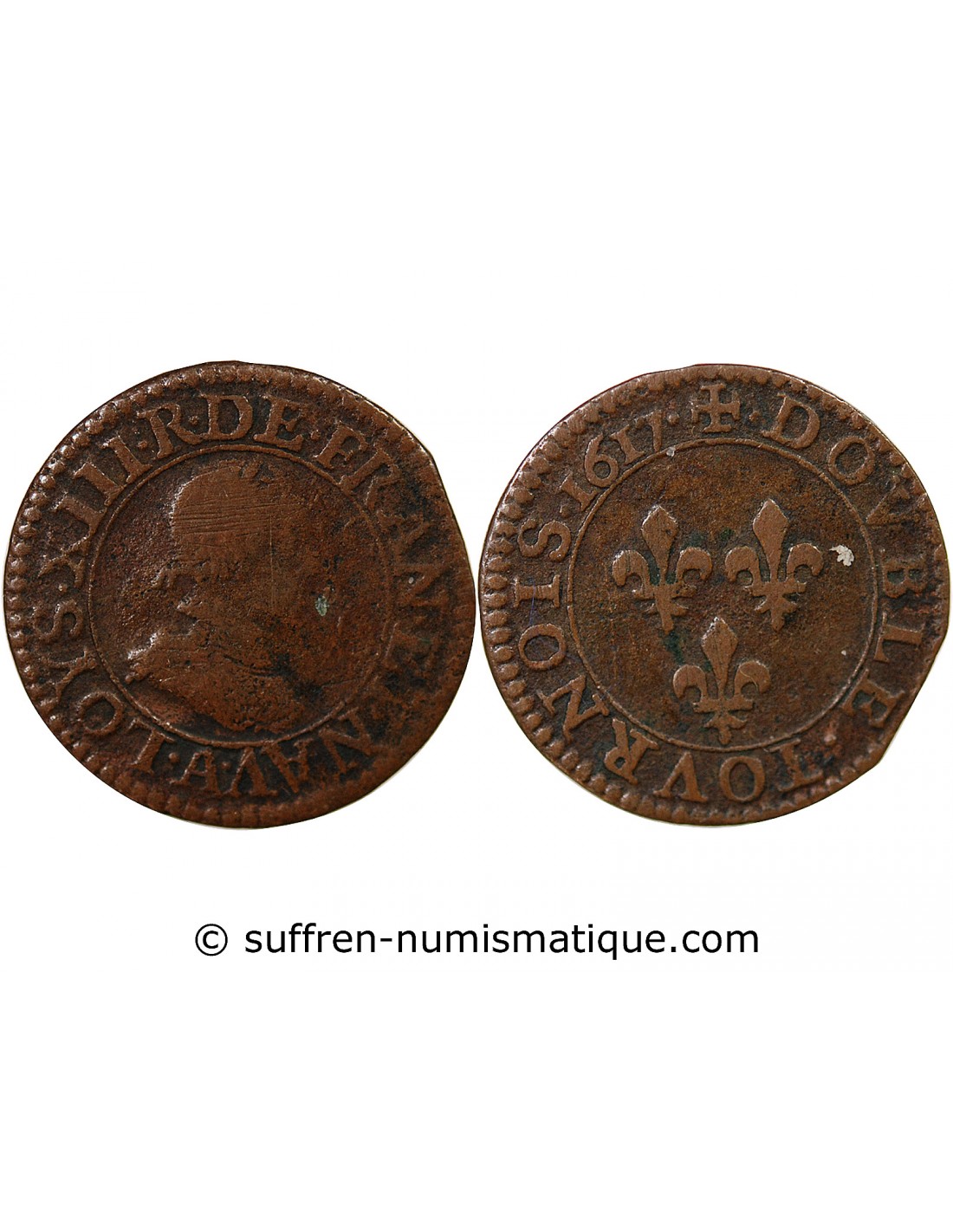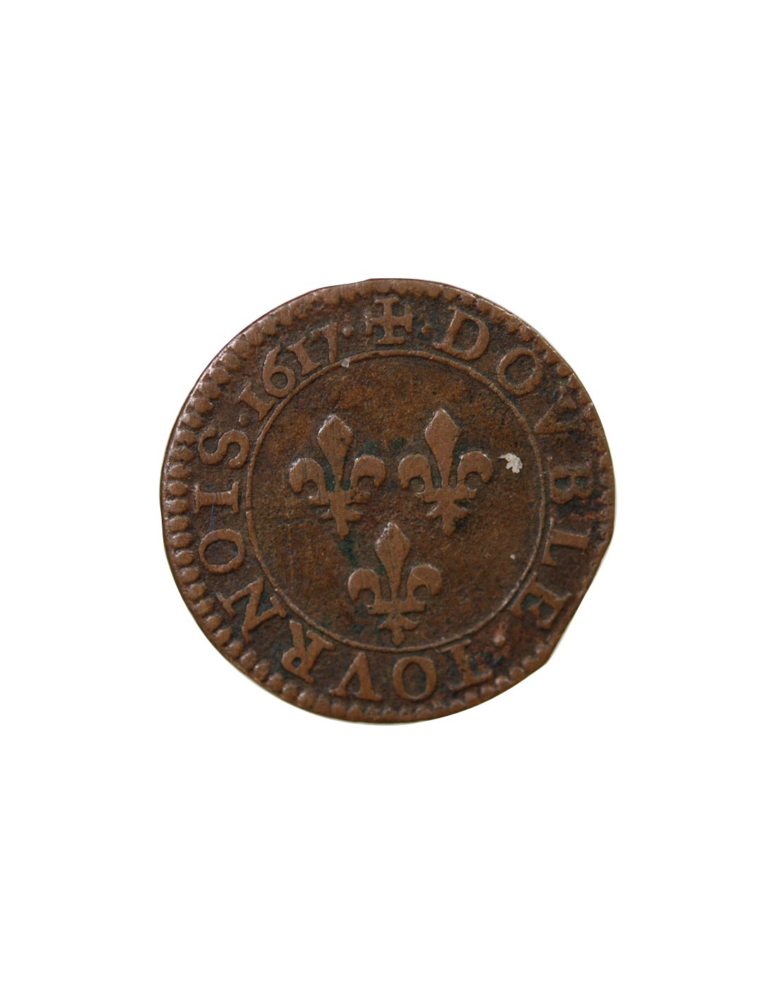 LOUIS XIII - DOUBLE TOURNOIS 1617 A PARIS, MOULIN DU LOUVRE
