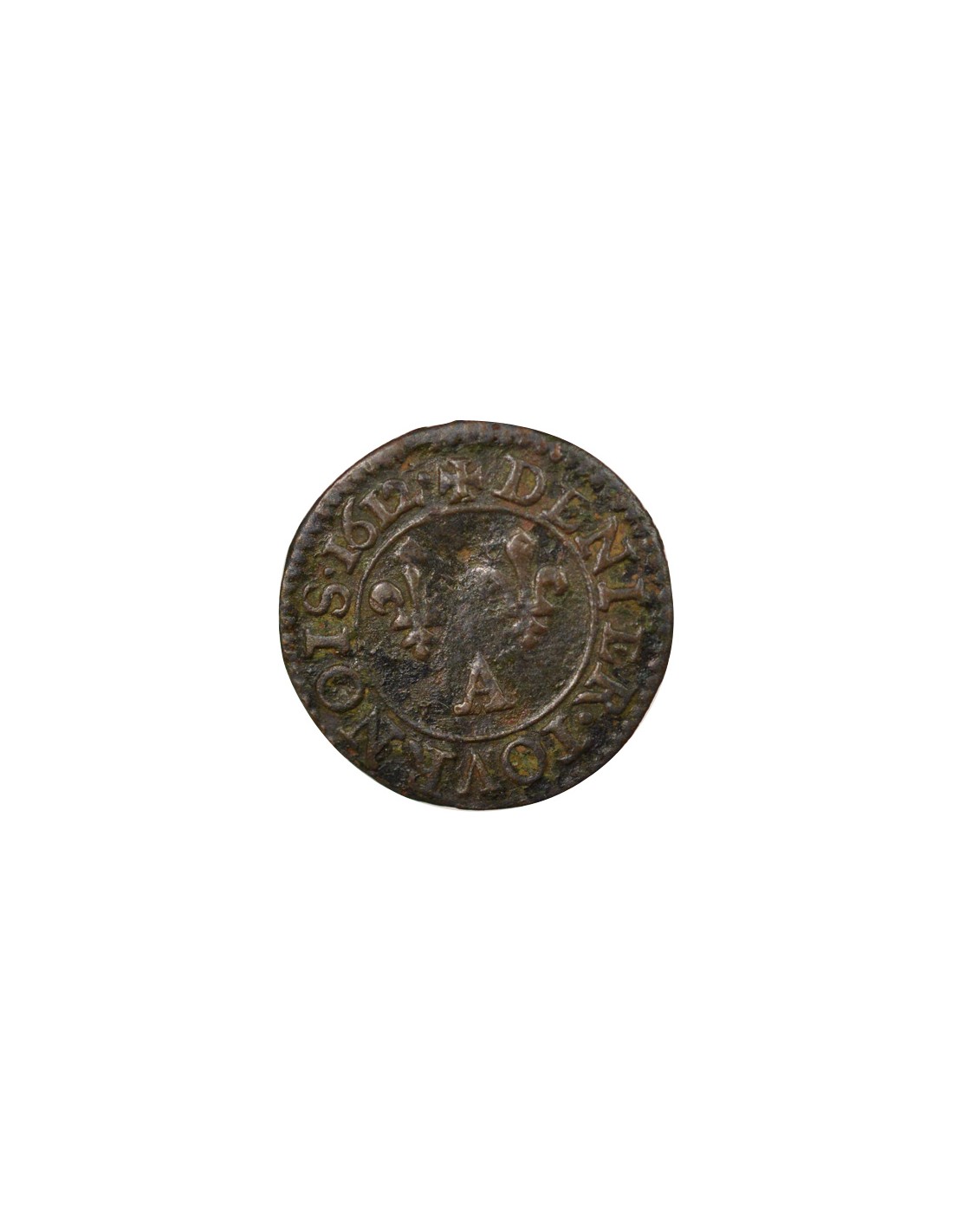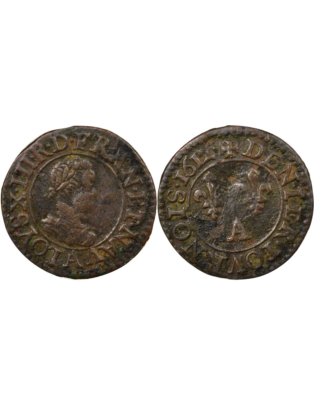 Revers : + DENIER . TOVRNOIS . 1612 . / A