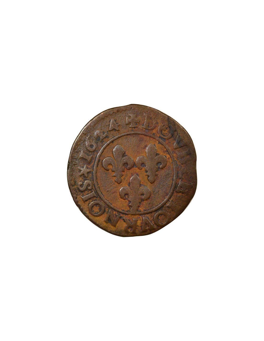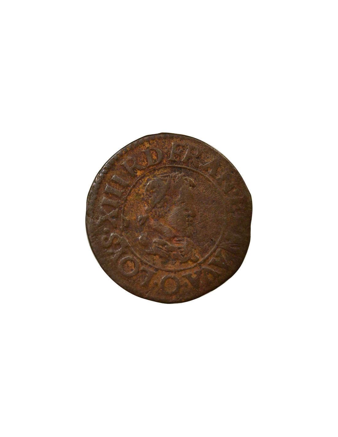 Louis XIII Type 3 1 double tournois Cuivre 1624 O Riom