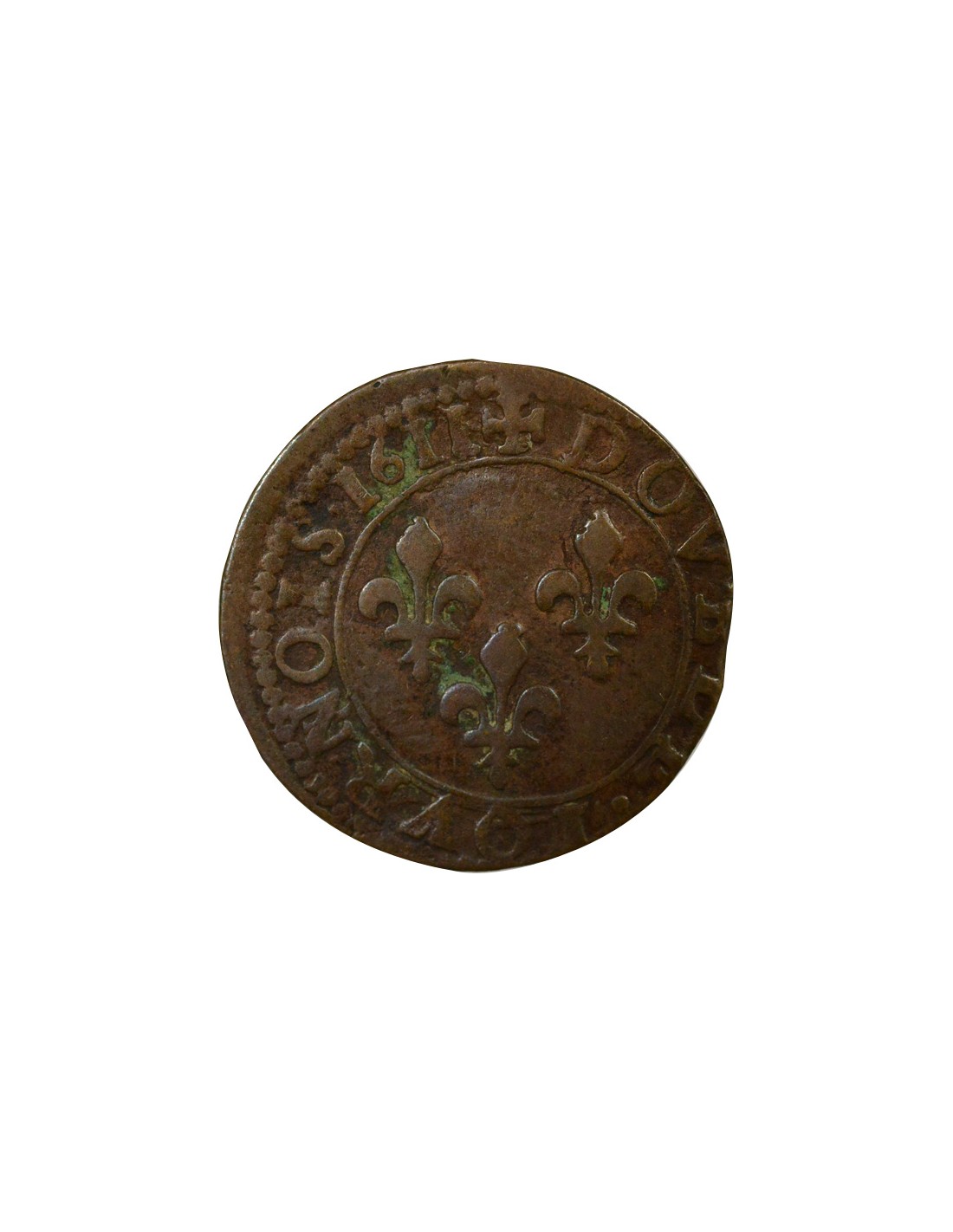 Louis XIII Type 2 1 double tournois Cuivre 1611 K Bordeaux