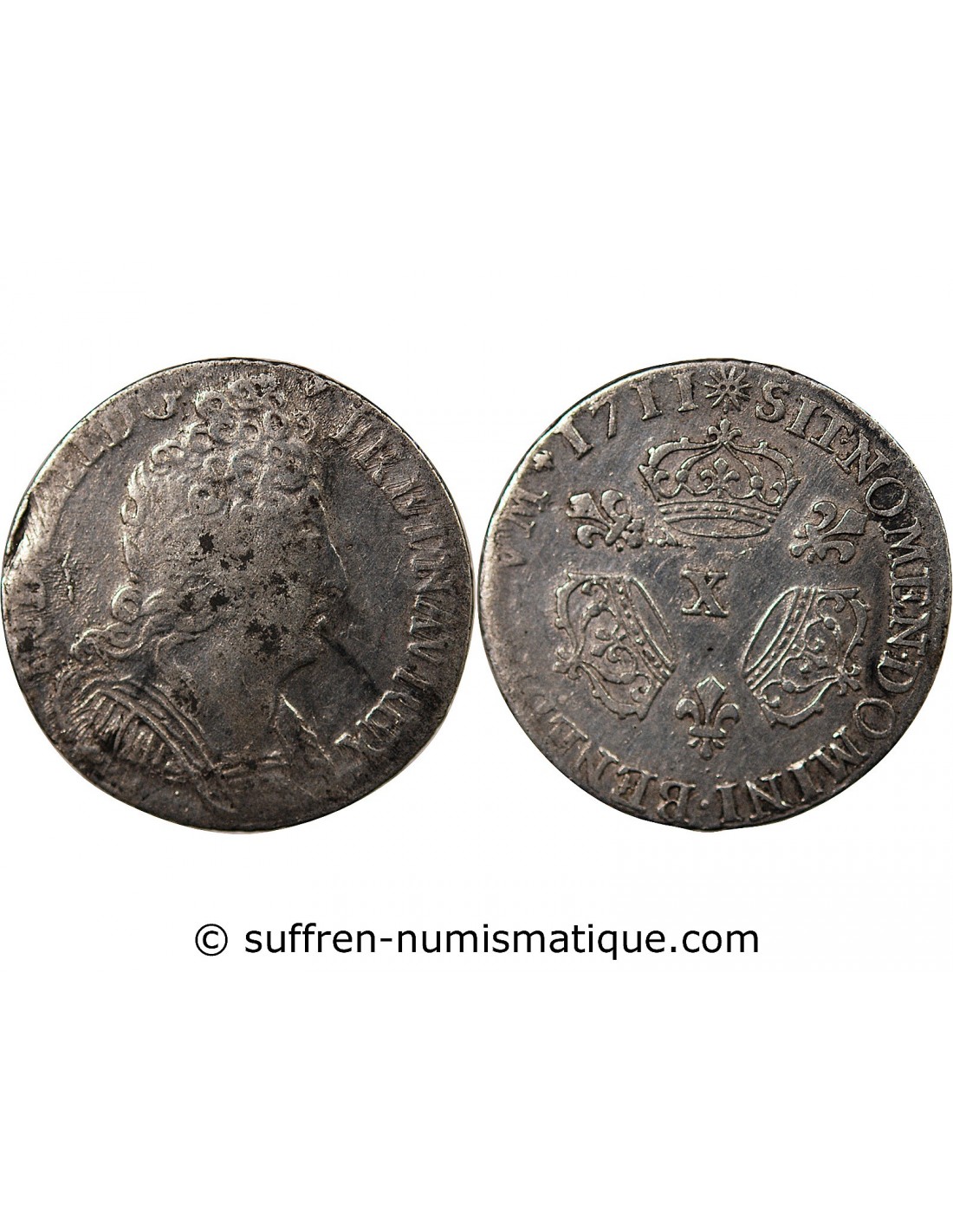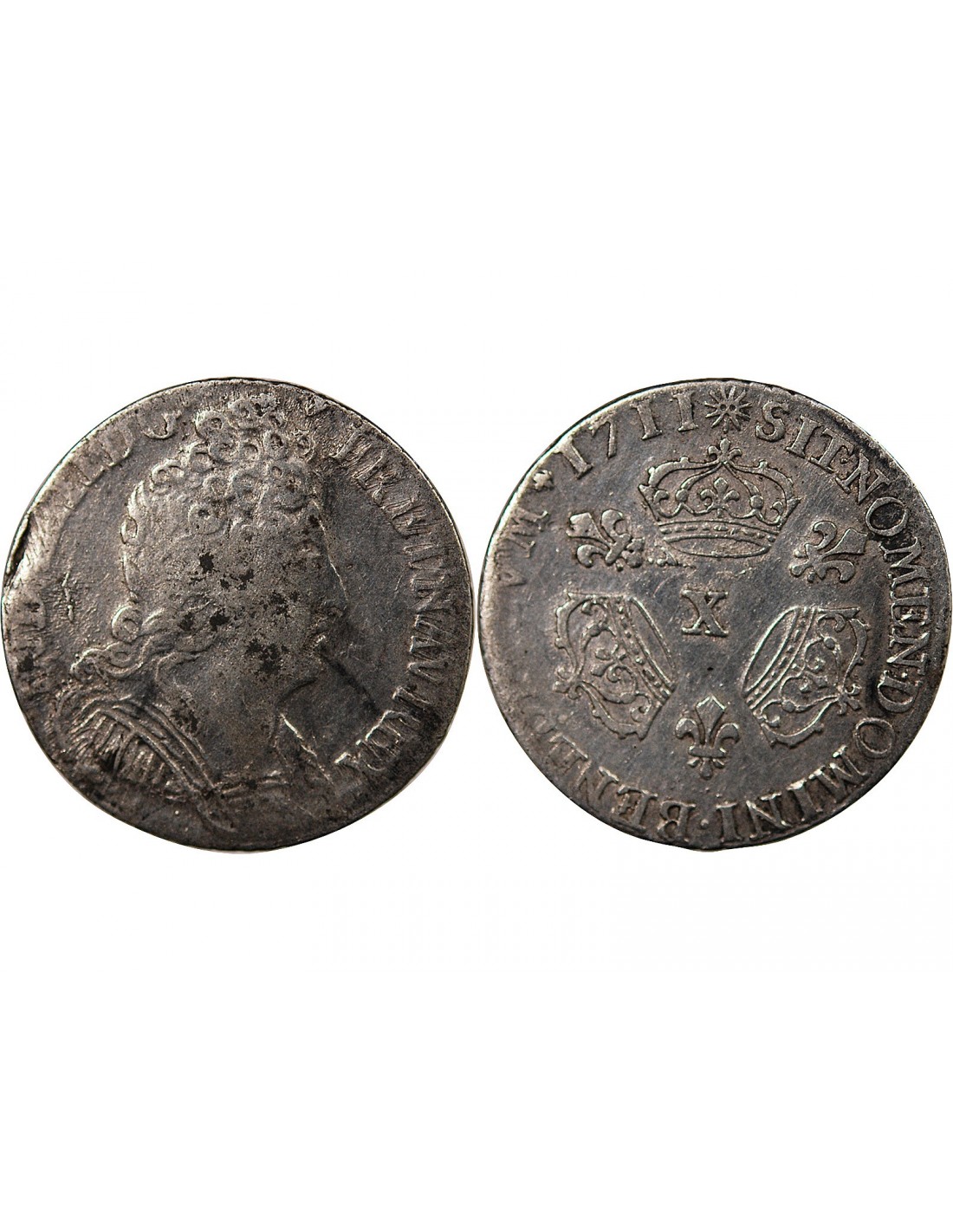 LOUIS XIV - 1/10 ECU AUX TROIS COURONNES 1711 X AMIENS