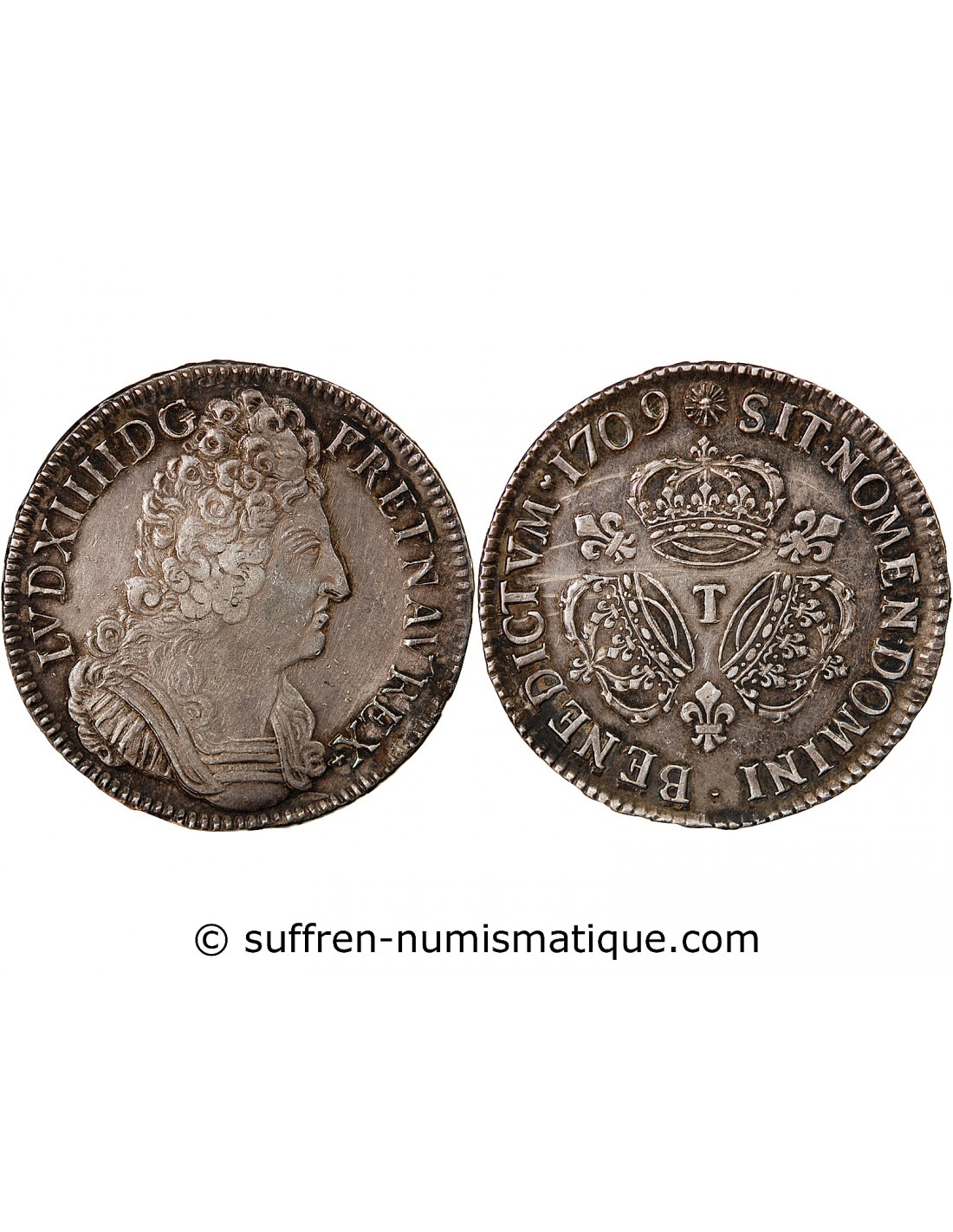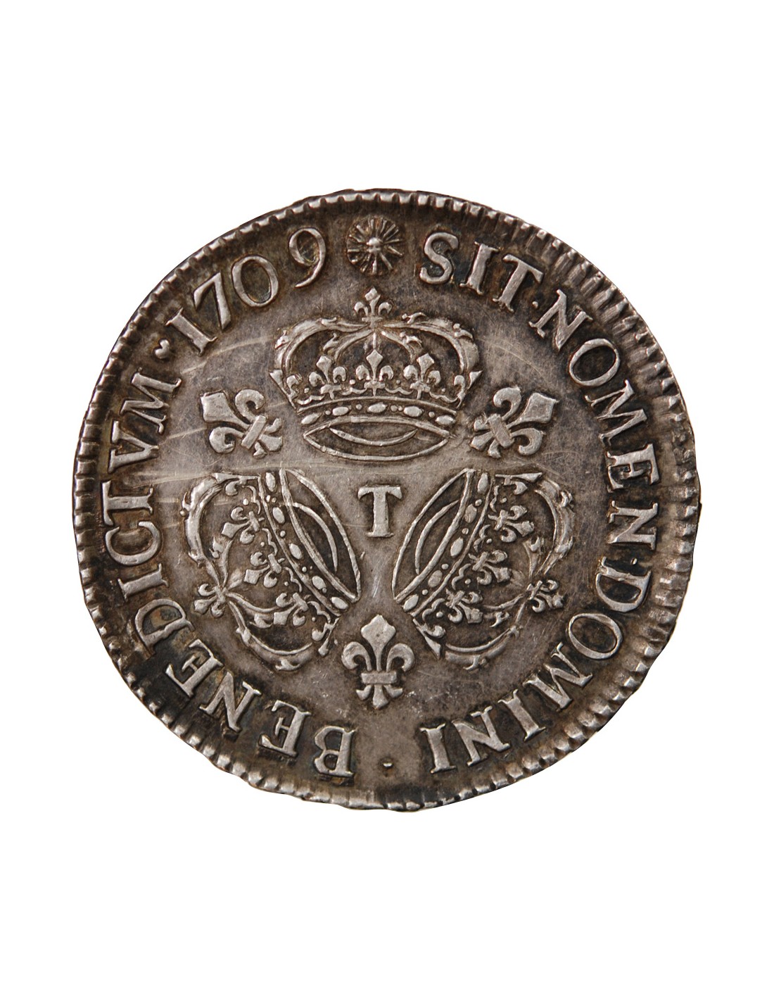 LOUIS XIV - ECU ARGENT AUX 3 COURONNES 1709 T NANTES