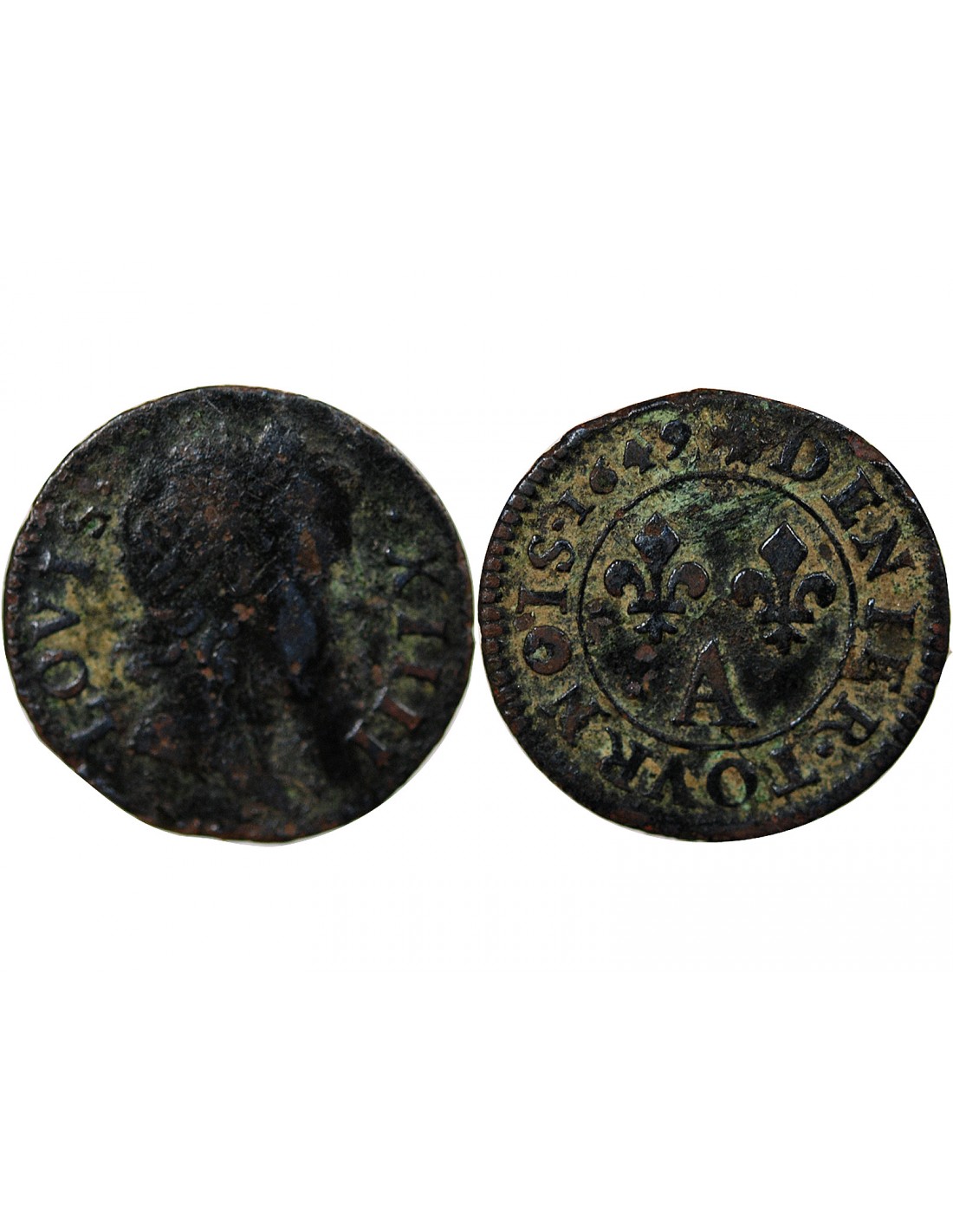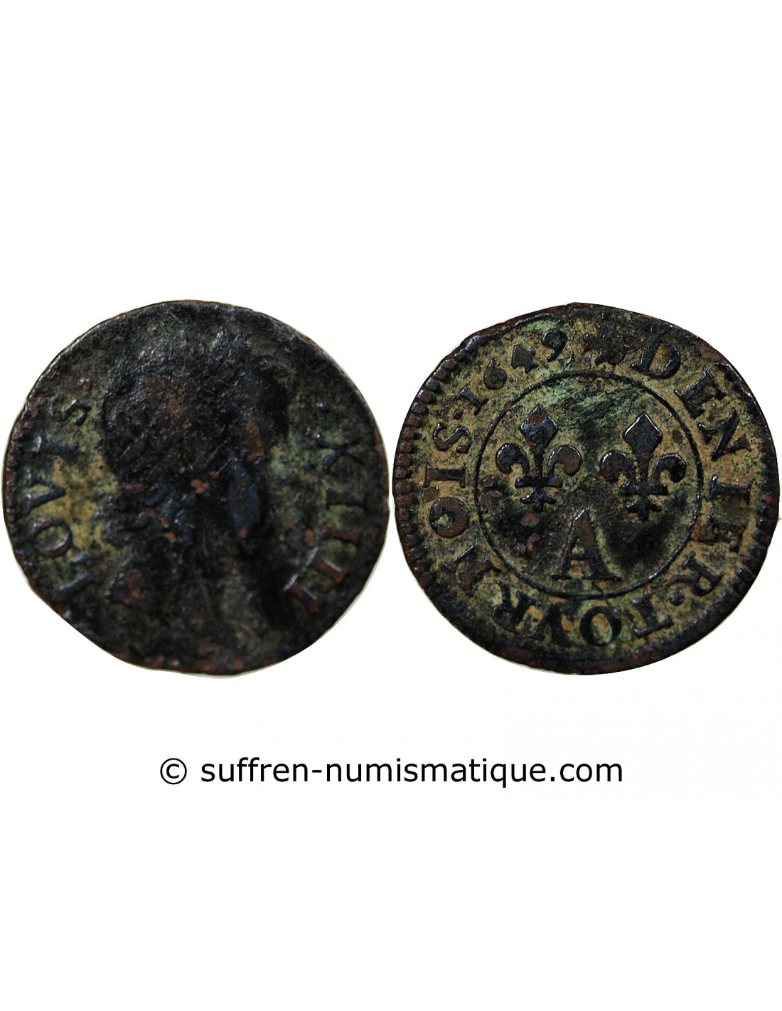 LOUIS XIV - DENIER TOURNOIS 1649 A PARIS