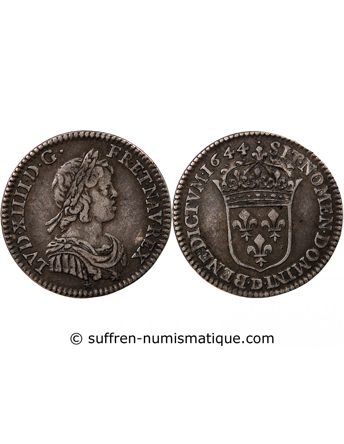 LOUIS XIV - 1/12 ECU ARGENT MECHE COURTE 1644 D LYON