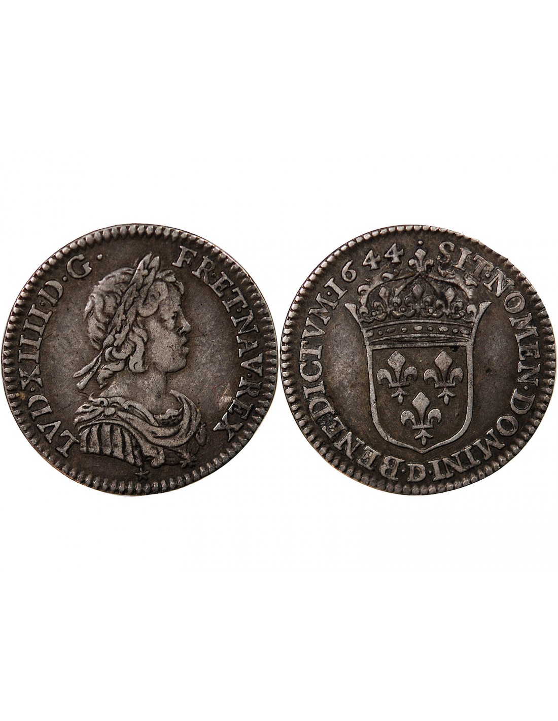 France Louis XIV - 1/12 Ecu Argent Mèche Courte 1644 D Lyon