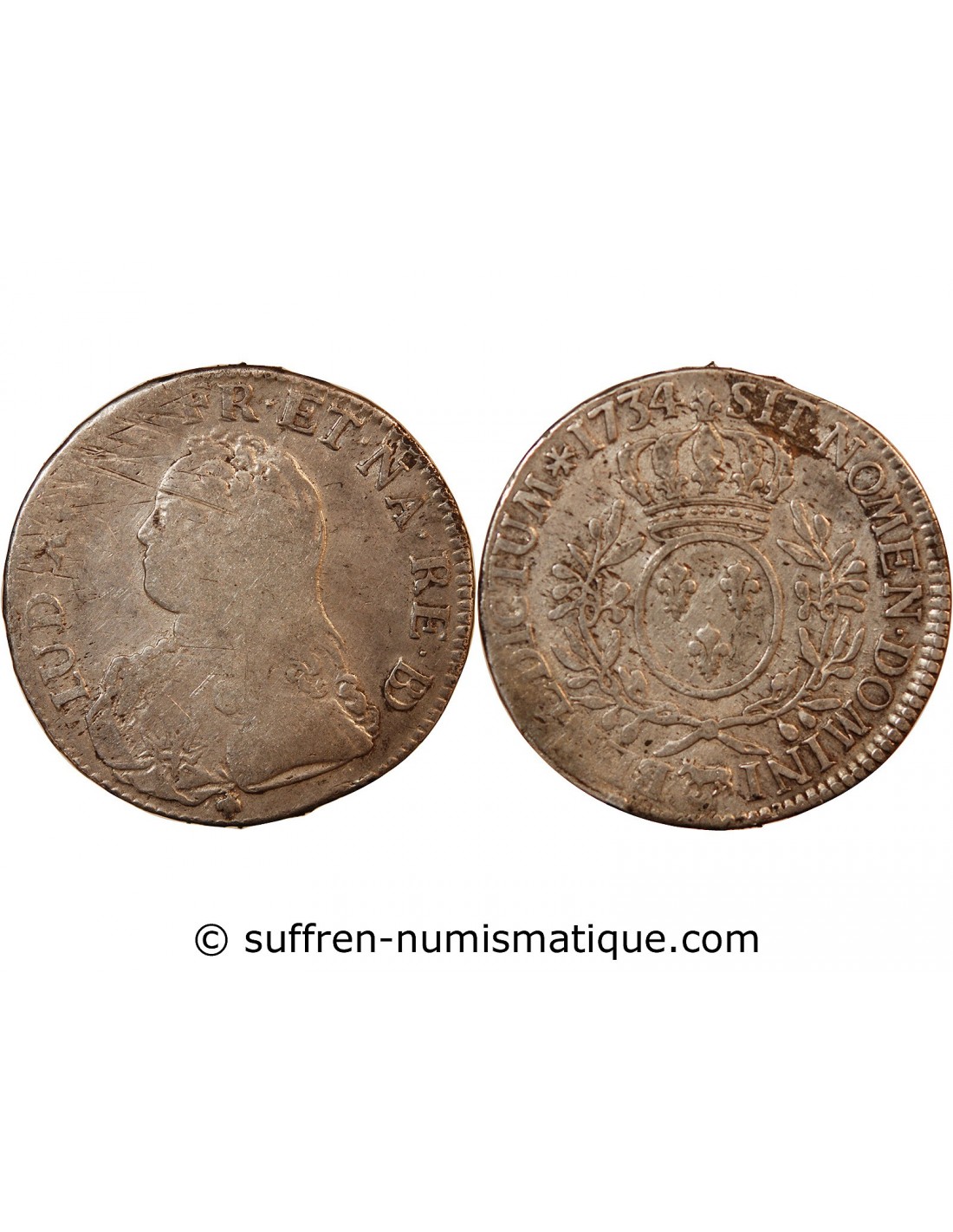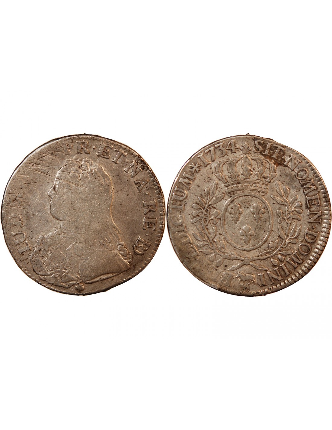 France LOUIS XV - ECU DE BÉARN ARGENT AUX BRANCHES D'OLIVIER 1734 PAU - R2