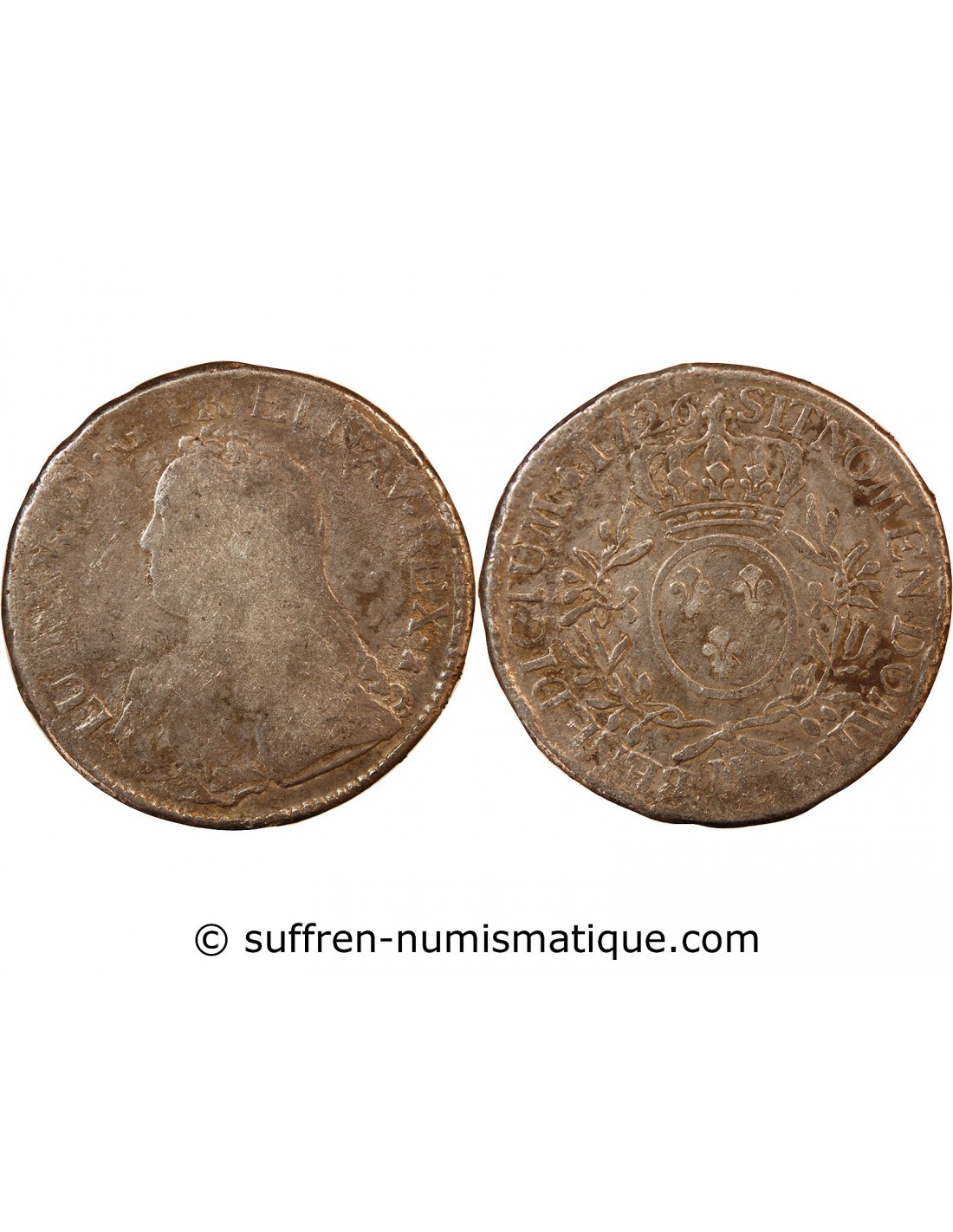 France LOUIS XV - ECU ARGENT AUX BRANCHES D'OLIVIER 1726 M TOULOUSE