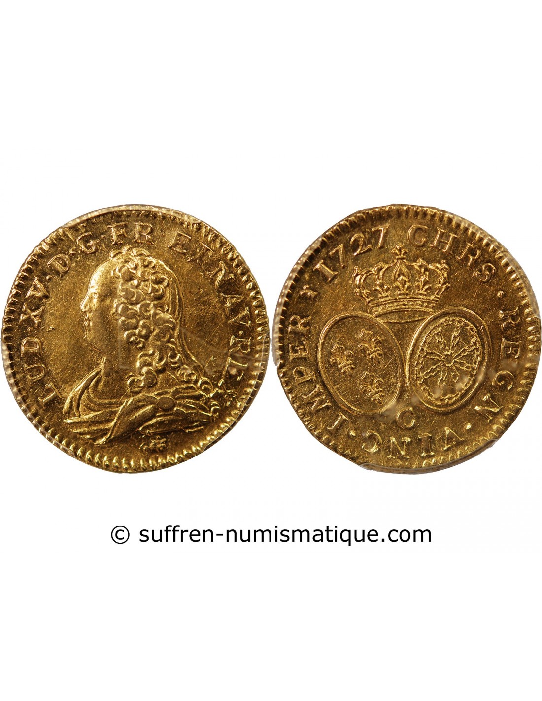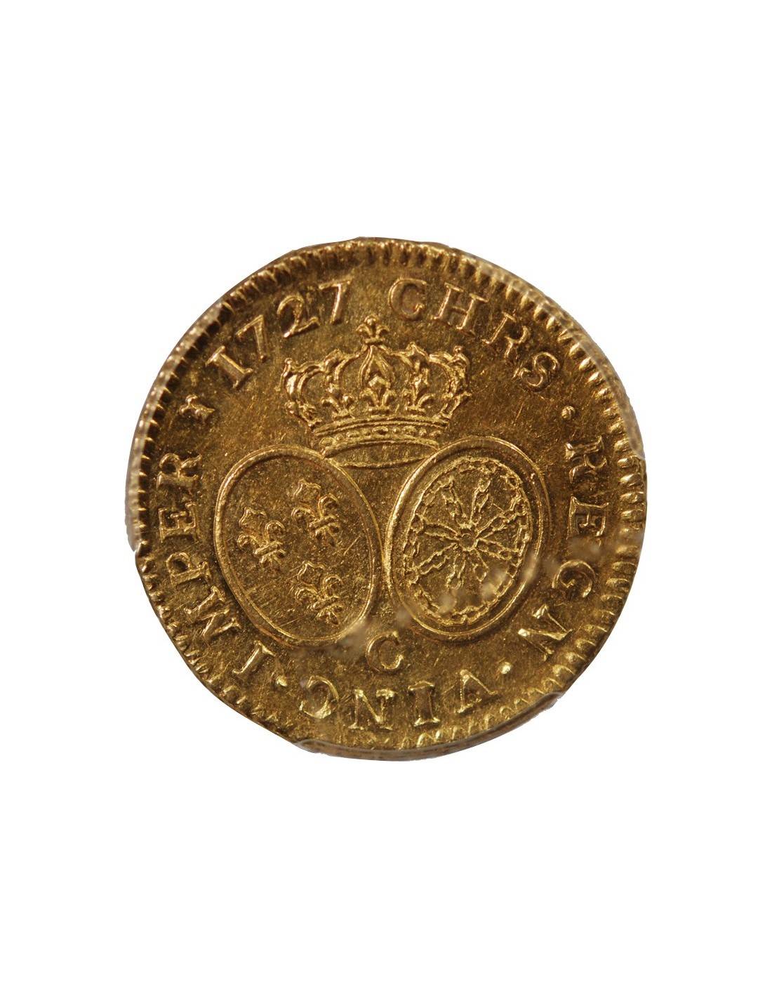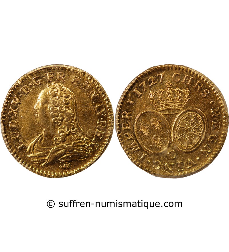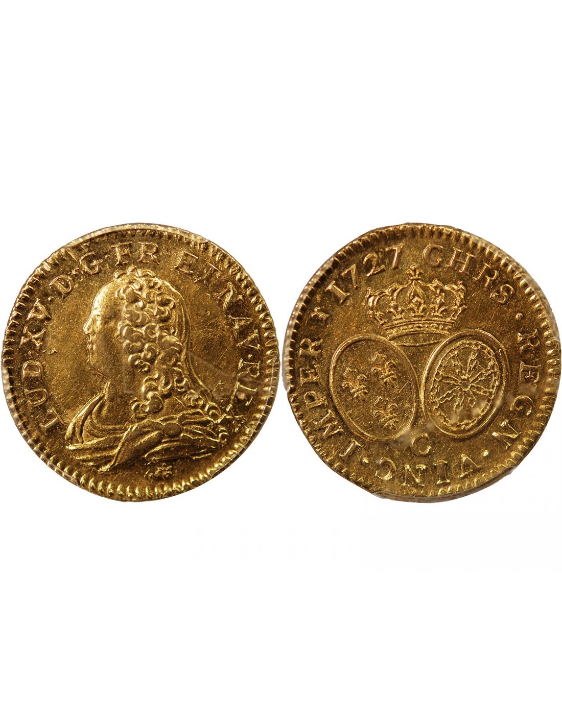 LOUIS XV - LOUIS D'OR AUX LUNETTES 1727 C CAEN - PCGS AU53