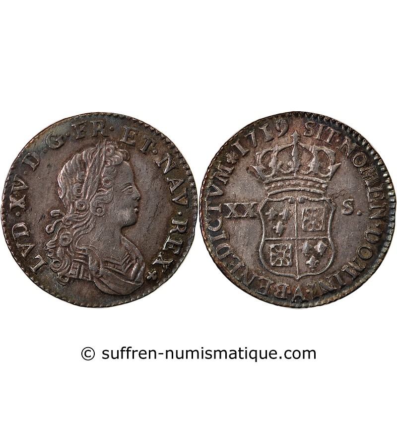 LOUIS XV - 20 SOLS DE FRANCE-NAVARRE 1719 PARIS