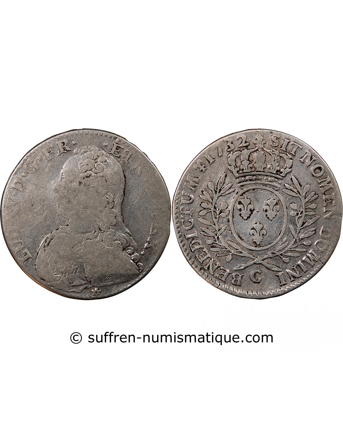 LOUIS XV - 1/2 ECU AUX BRANCHES D'OLIVIER 1732 C CAEN
