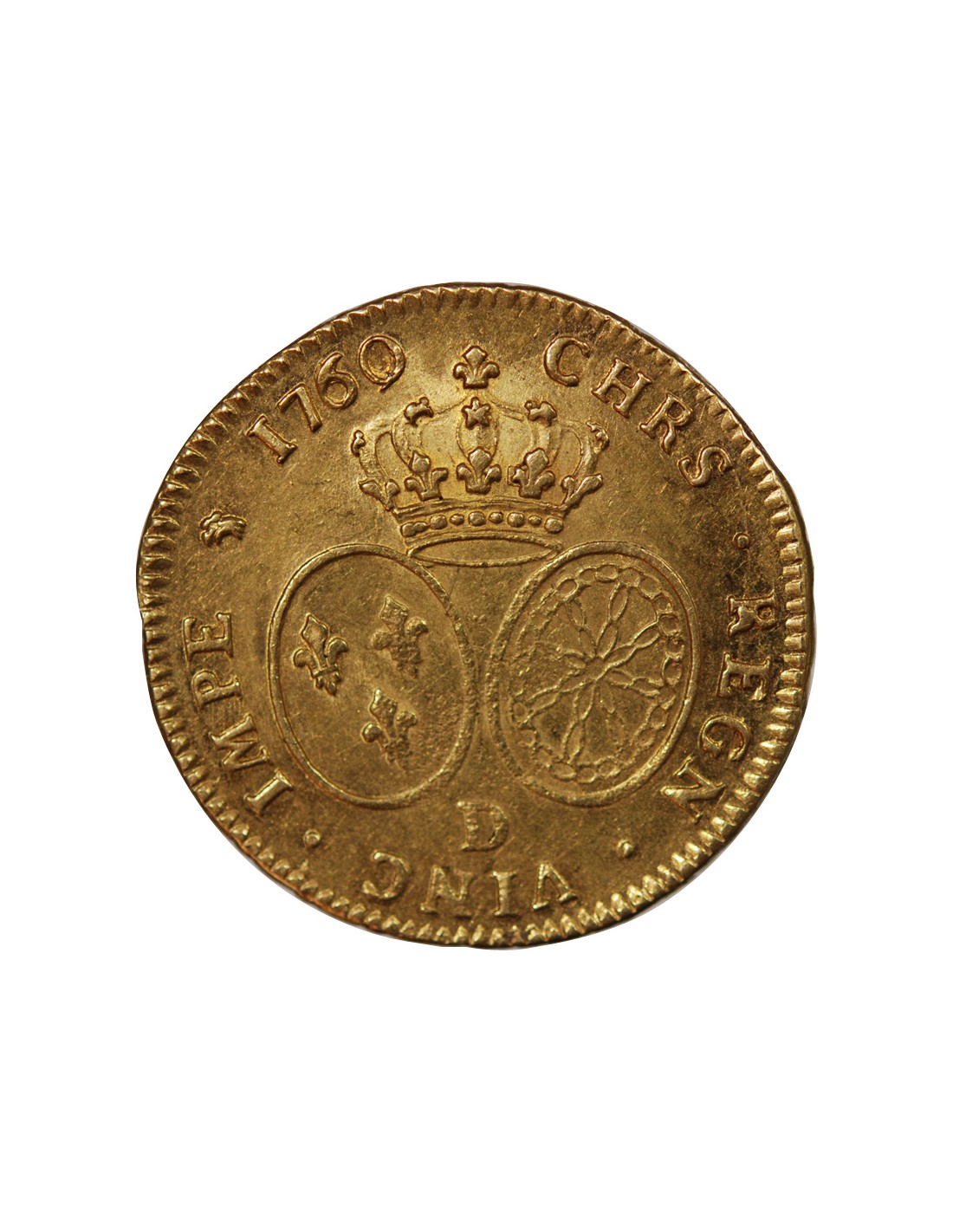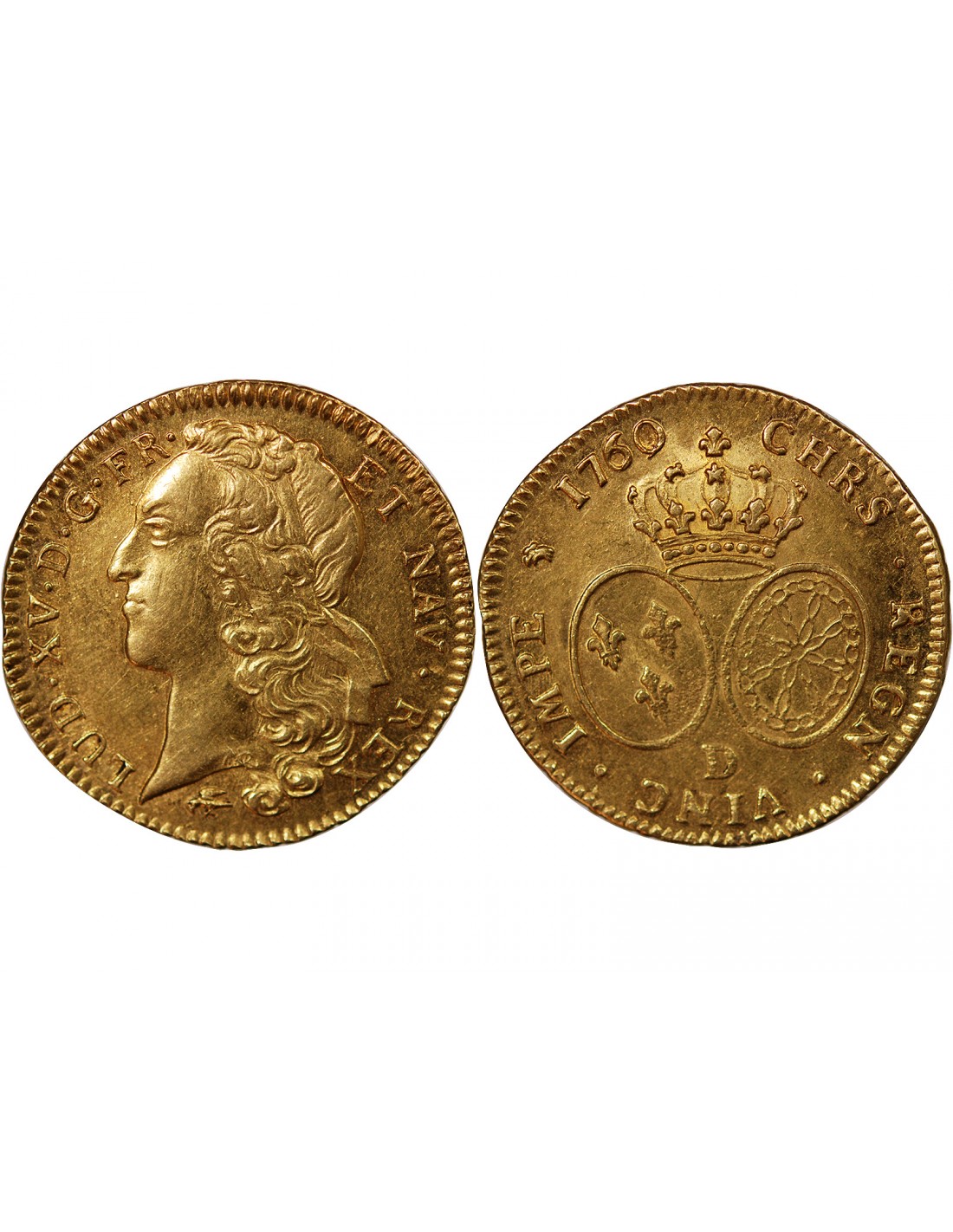 LOUIS XV - DOUBLE LOUIS D'OR AU BANDEAU - 1760 D LYON