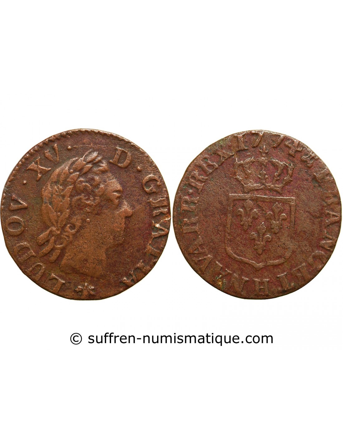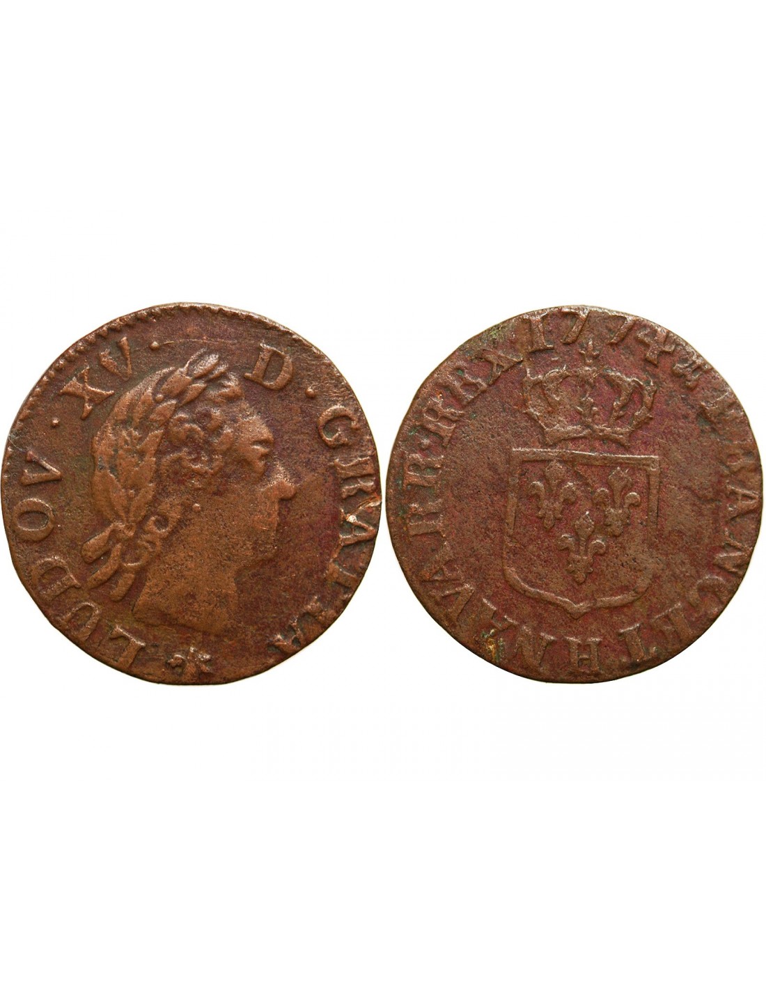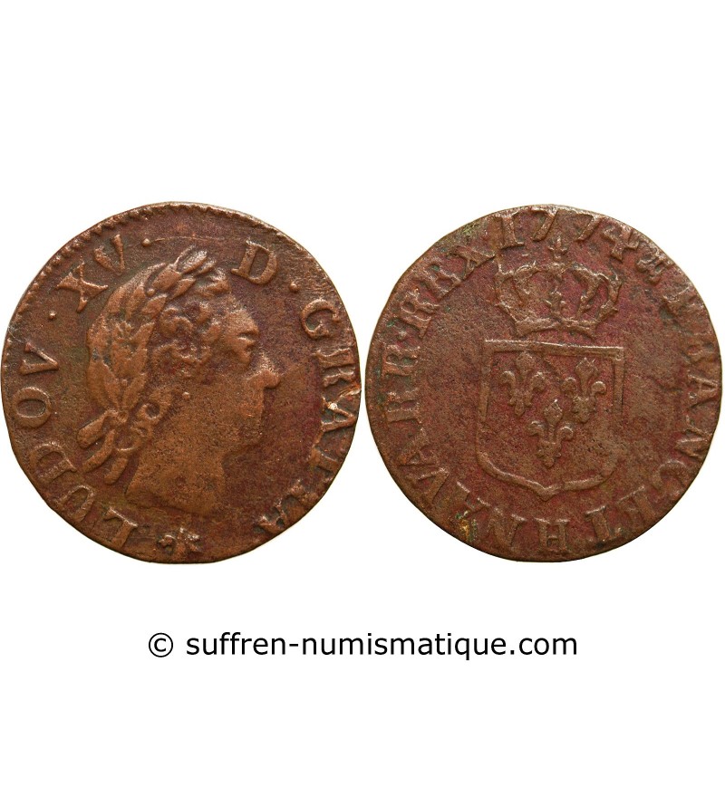 LOUIS XV - LIARD A LA VIEILLE TETE 1774 H LA ROCHELLE