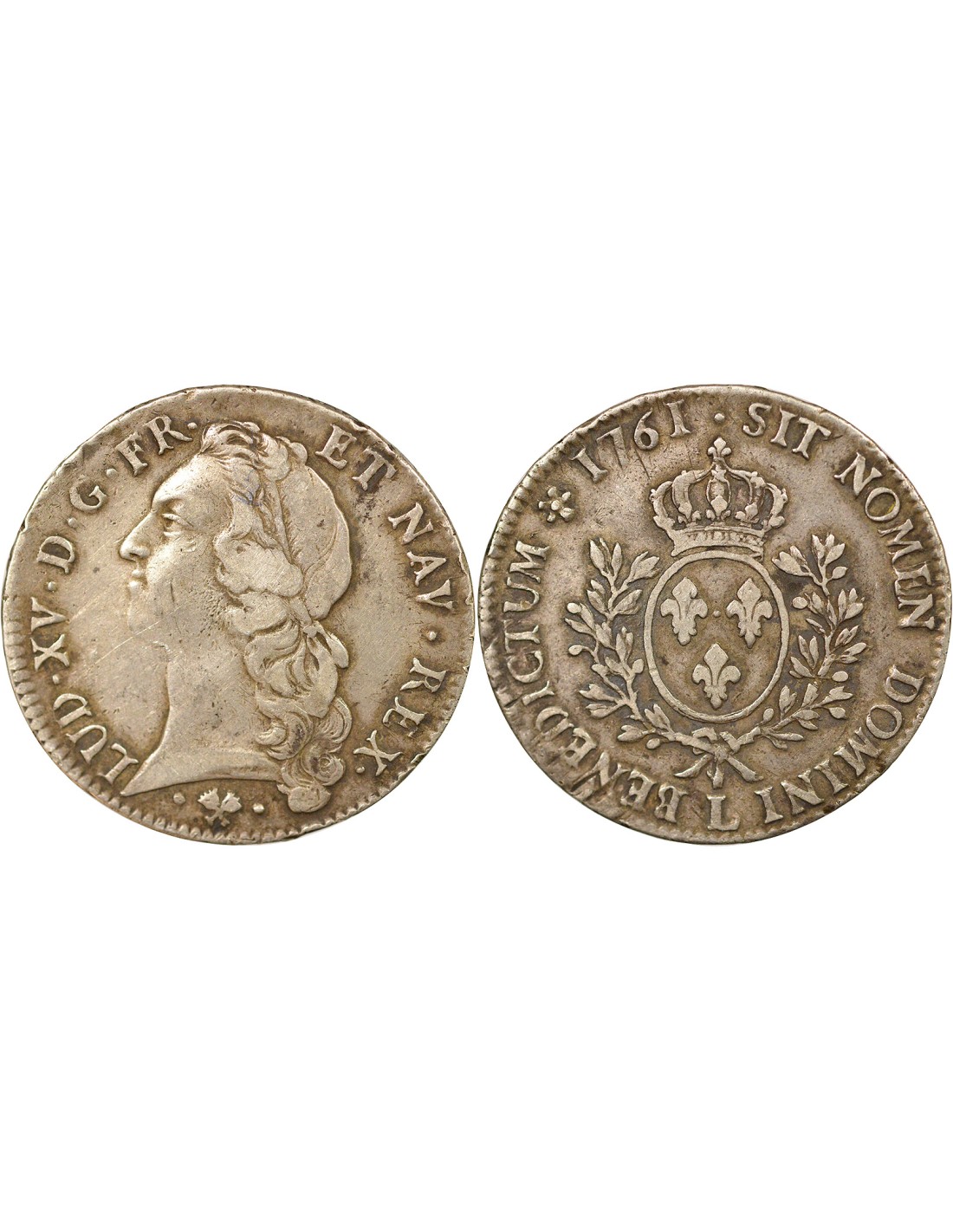 Louis XV Au Bandeau 1 ecu Argent 1761 L Bayonne