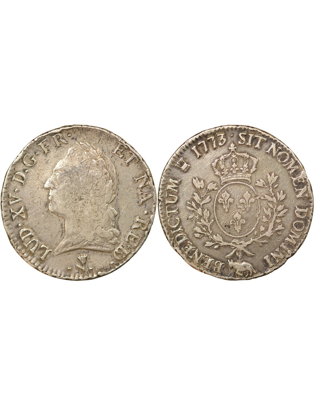 Louis XV A la Vieille Tête 1 ecu Argent 1773 Pau