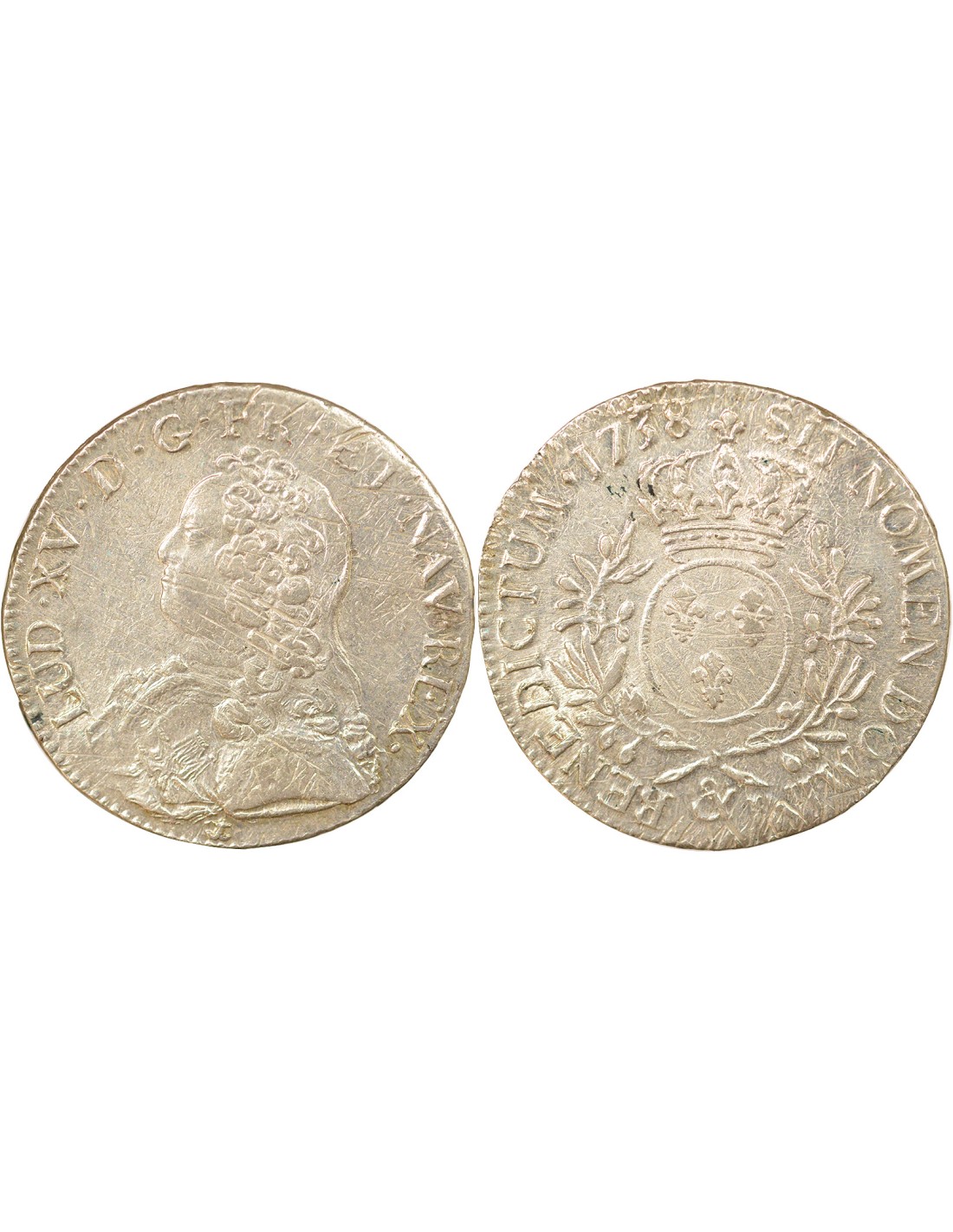 France Louis XV - Ecu Argent au Buste Habillé - 1738 & Aix-en-Provence
