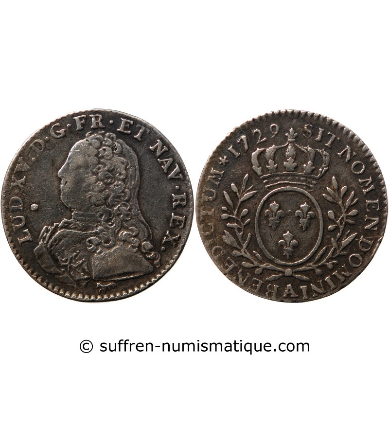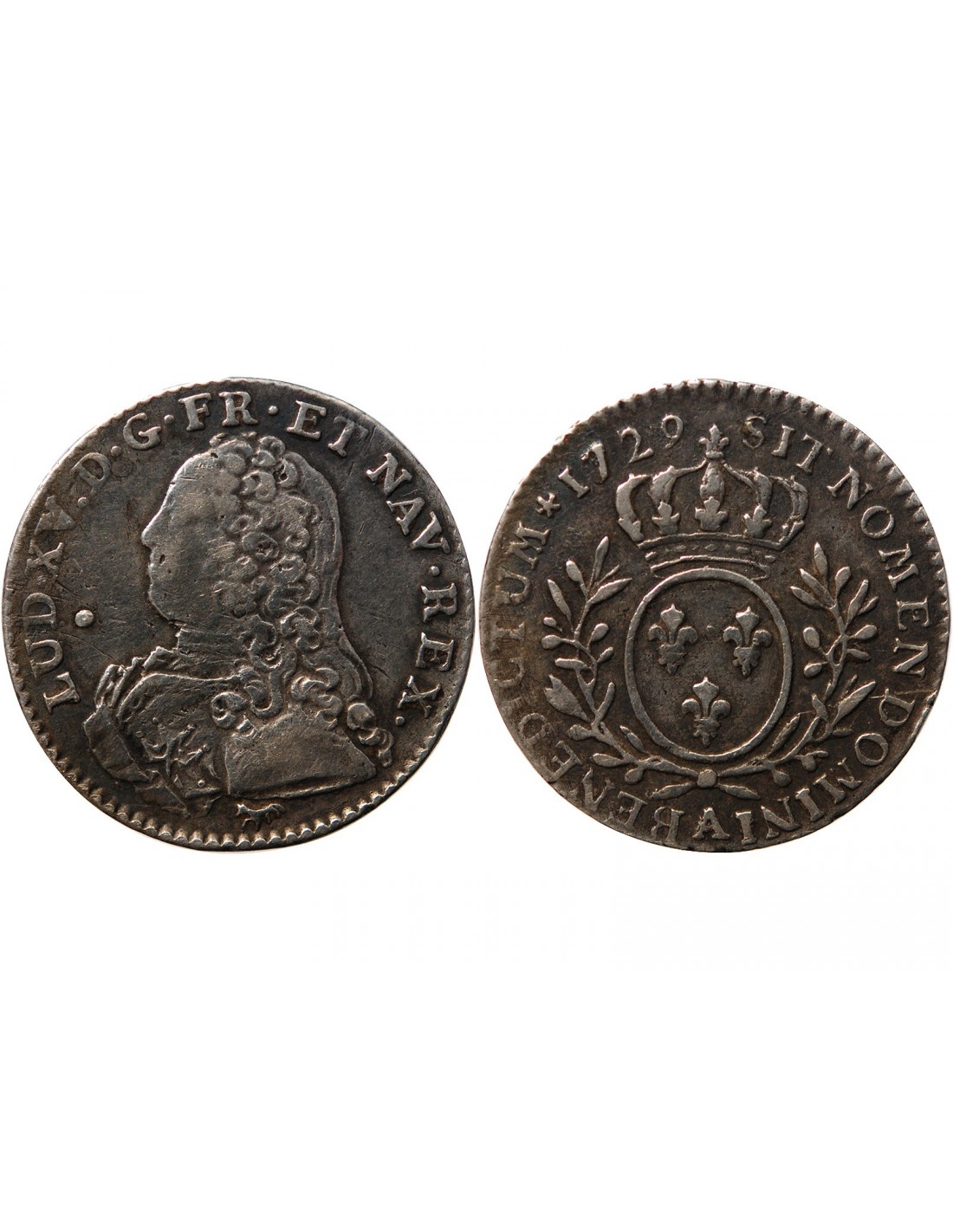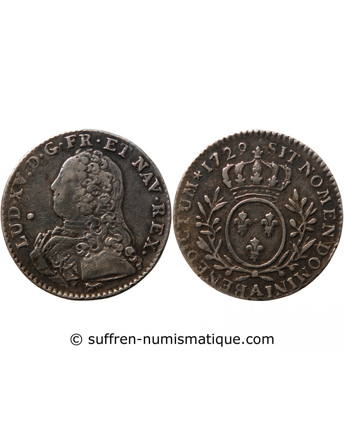 LOUIS XV - 1/10 ECU AUX BRANCHES D'OLIVIER 1729 A PARIS