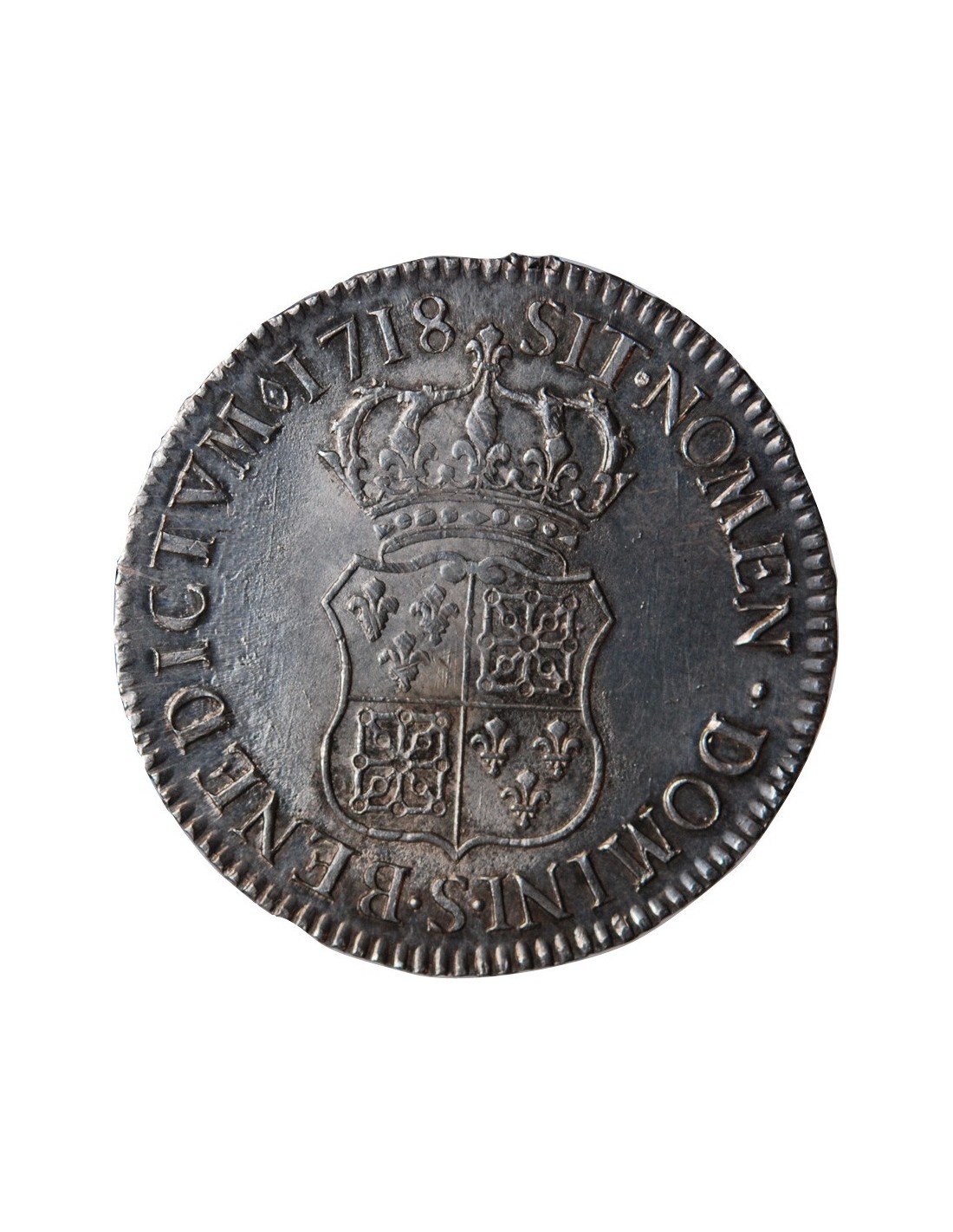 LOUIS XV - ECU DE FRANCE & NAVARRE 1718 S REIMS
