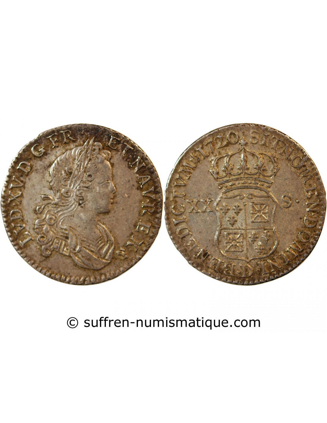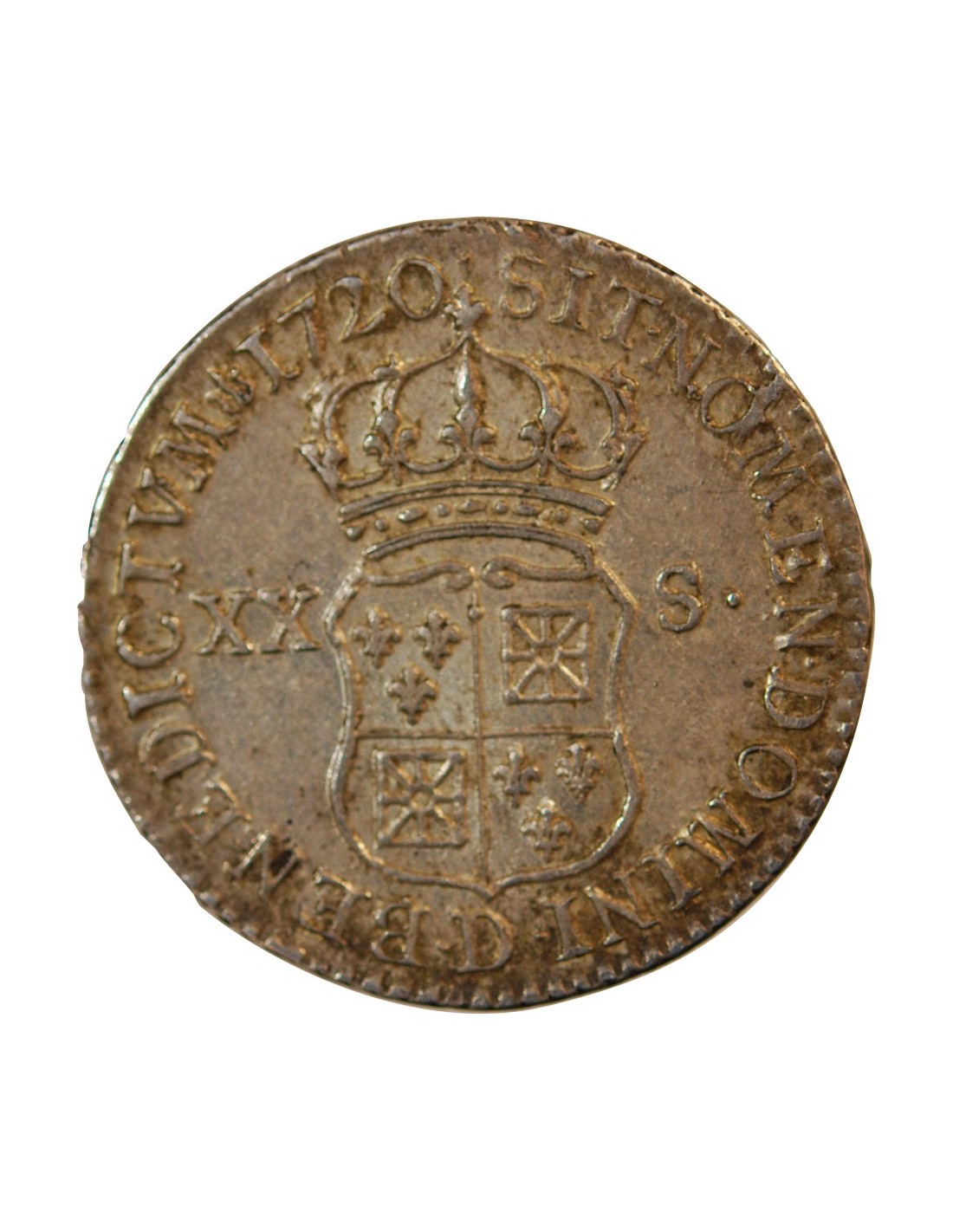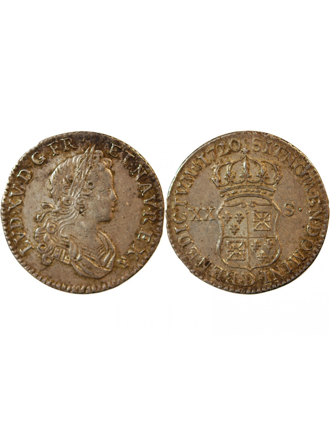 LOUIS XV - 1/6 ECU FRANCE NAVARRE 1719 D LYON