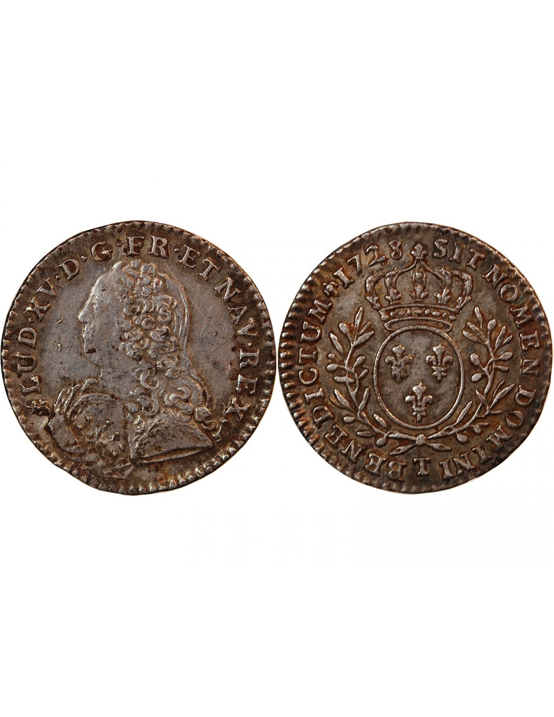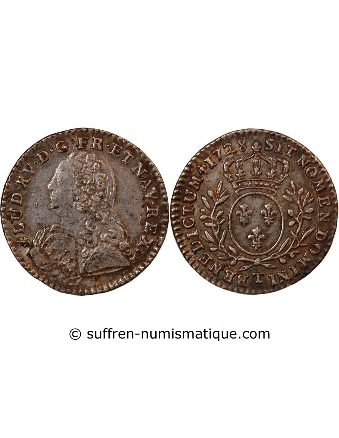 LOUIS XV - 1/10 ECU AUX BRANCHES D'OLIVIER 1728 NANTES