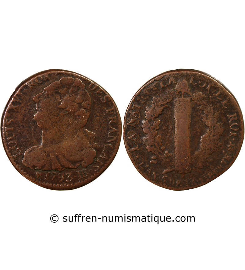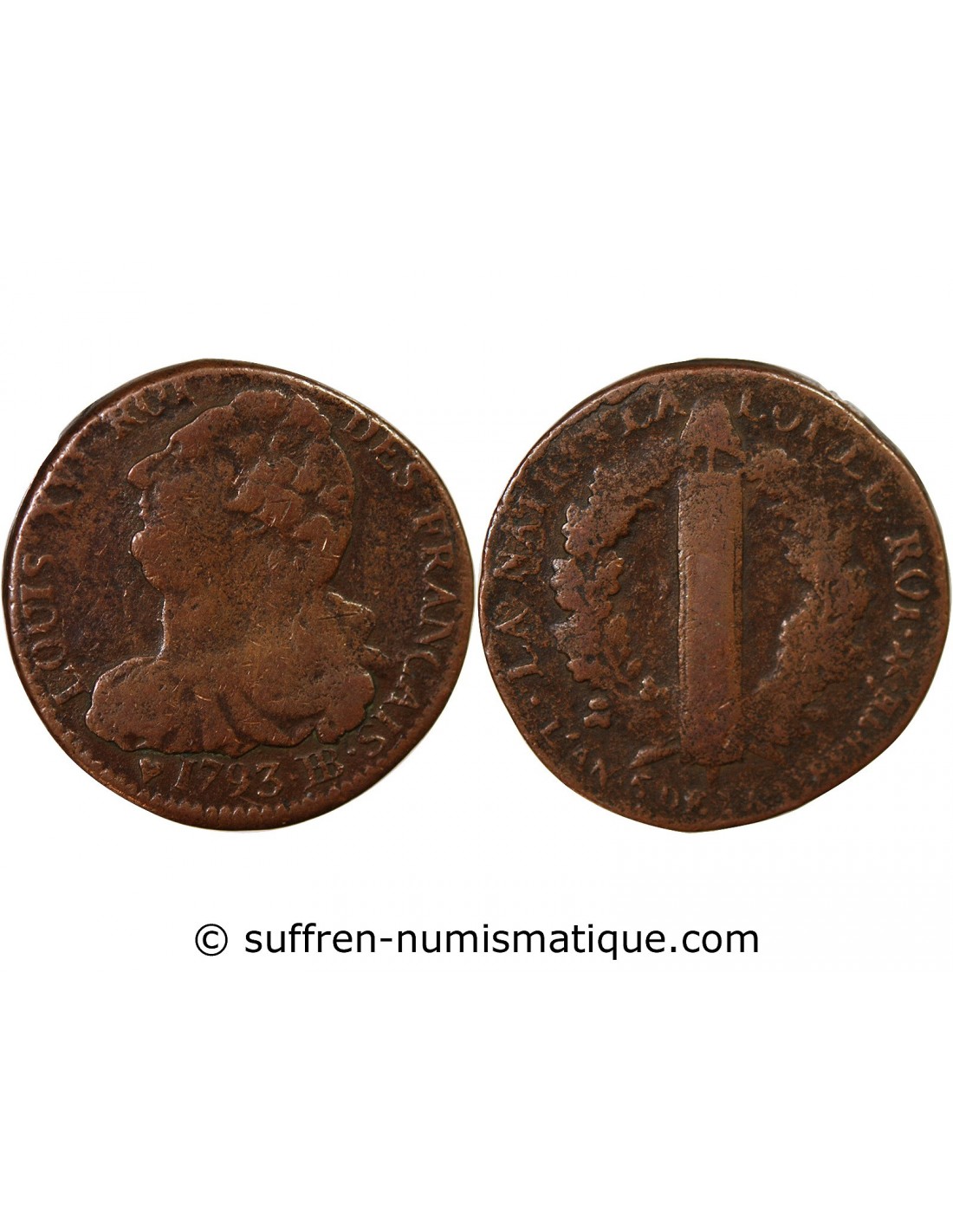 LOUIS XVI, CONSTITUTION - 2 SOLS AU FAISCEAU 1793 BB STRASBOURG