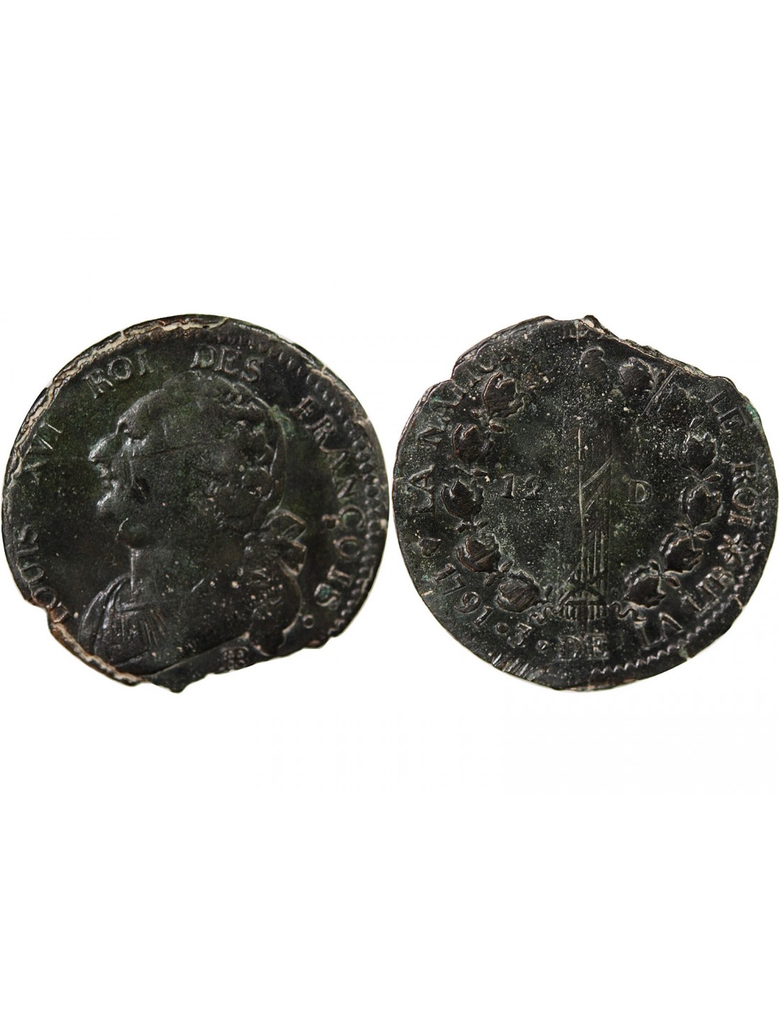 LOUIS XVI, CONSTITUTION - 12 DENIERS 1791 BB STRASBOURG