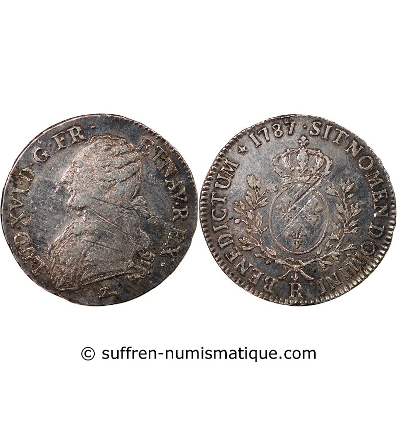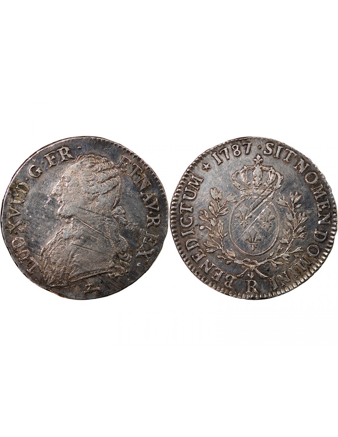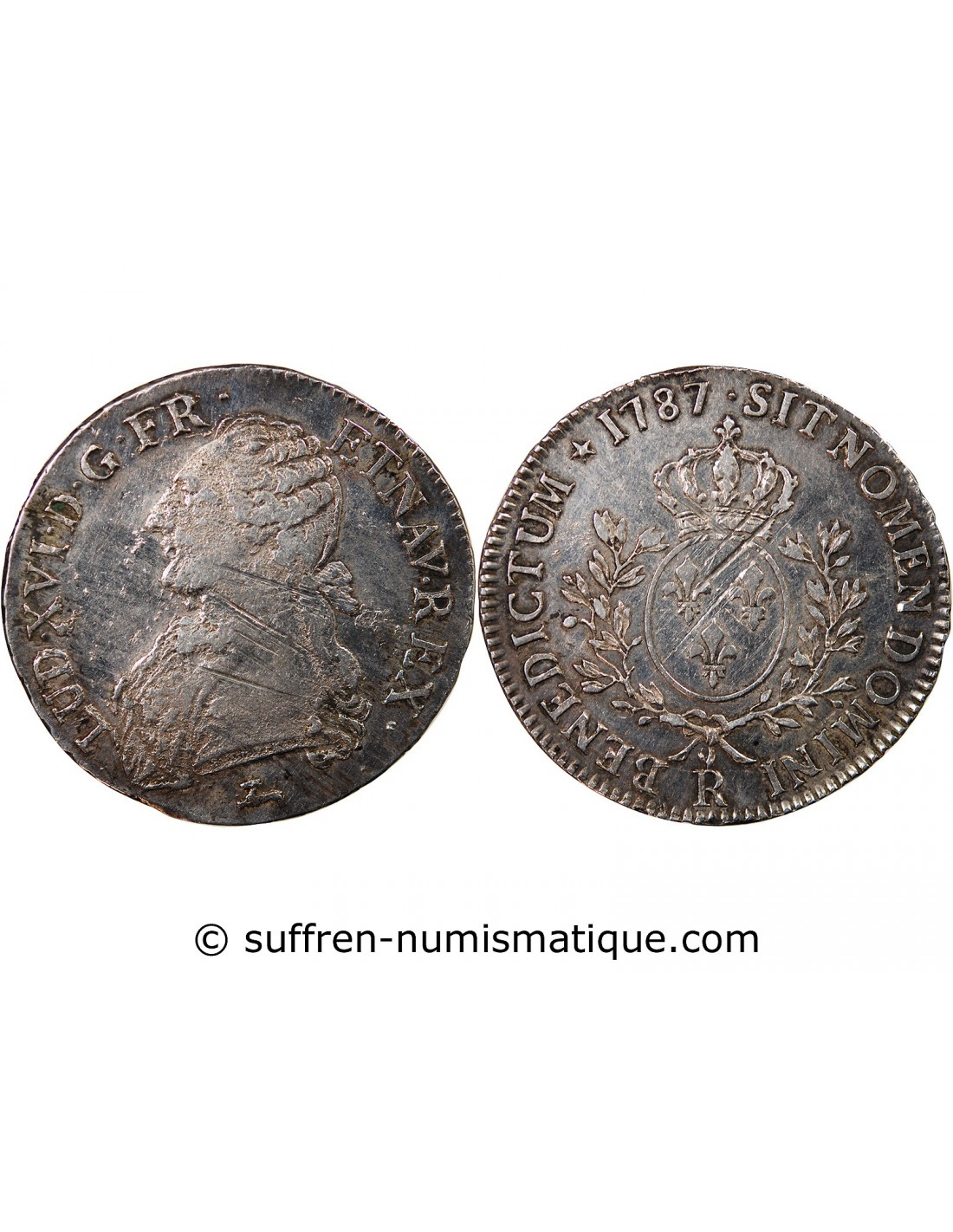 LOUIS XVI - ÉCU ARGENT AUX BRANCHES D'OLIVIER 1787 R ORLEANS