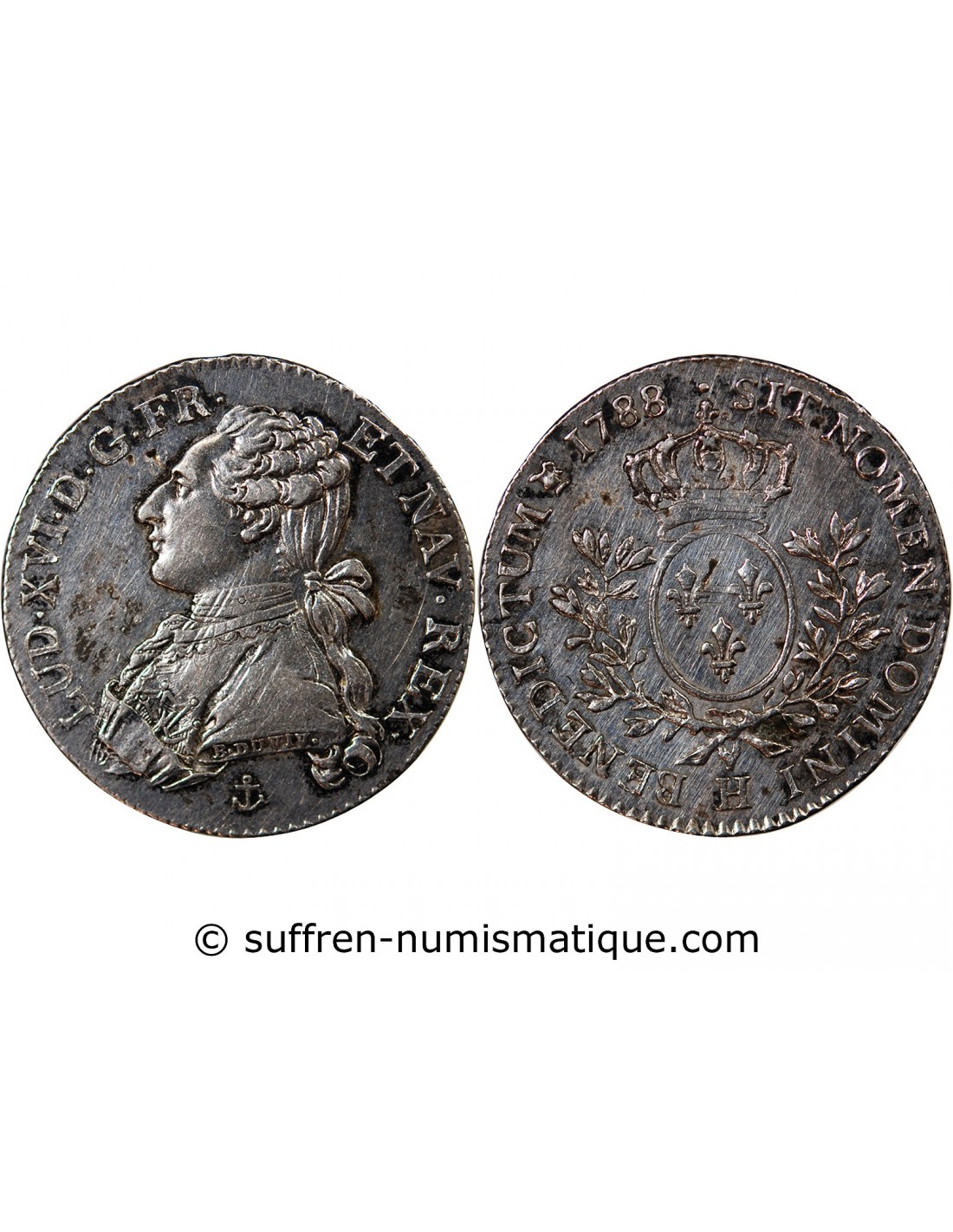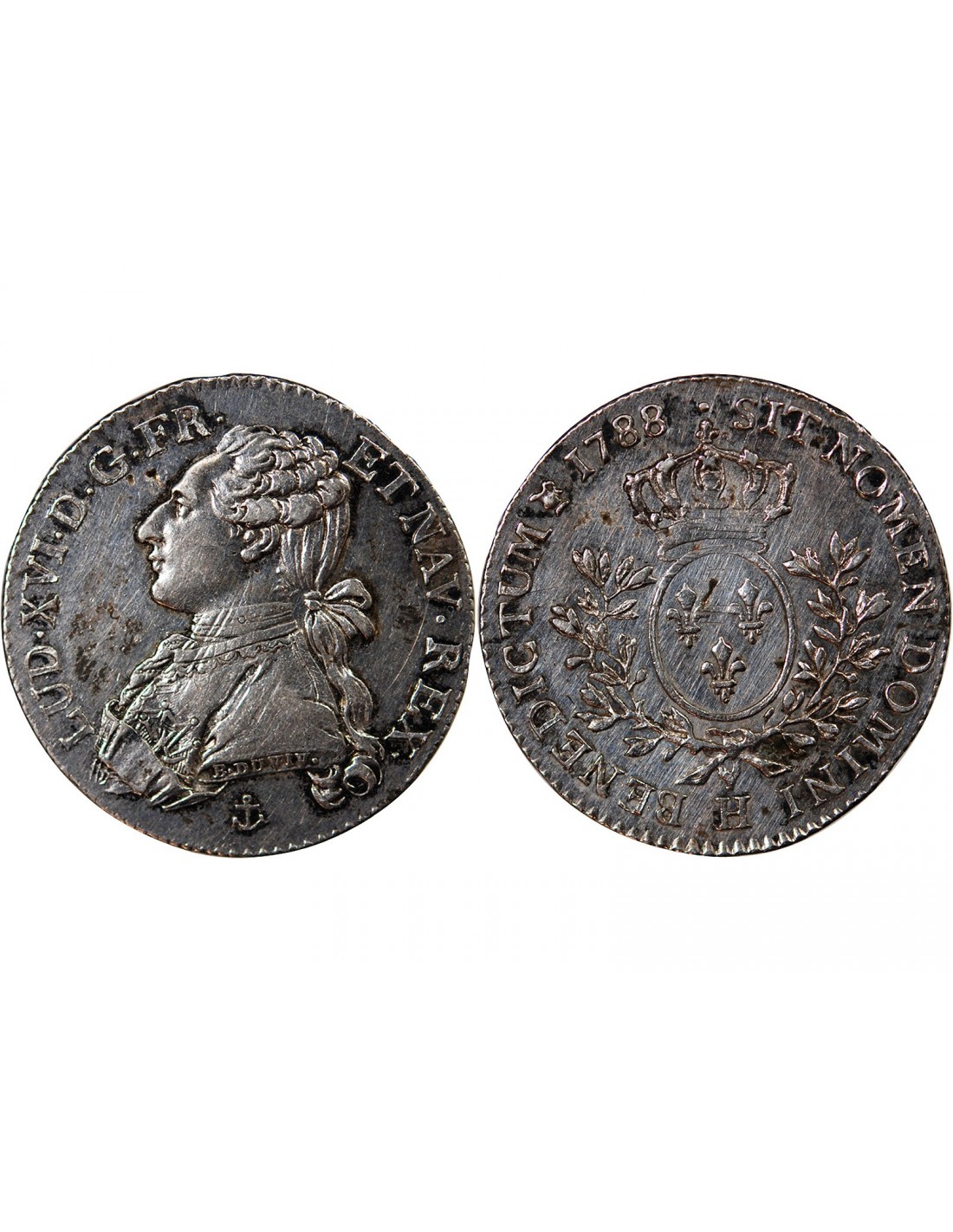 France Louis XVI - 1/5 Ecu Argent Aux Branches D'Olivier 1788 H La Rochelle