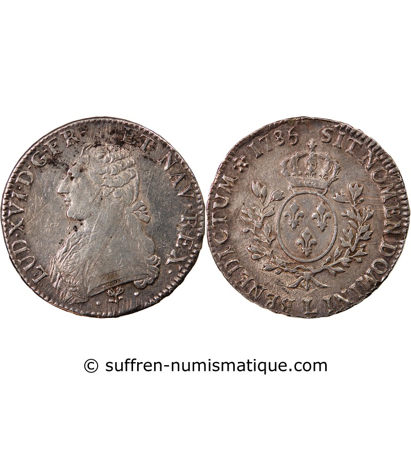 LOUIS XVI - ÉCU ARGENT AUX BRANCHES D'OLIVIER 1785 L BAYONNE