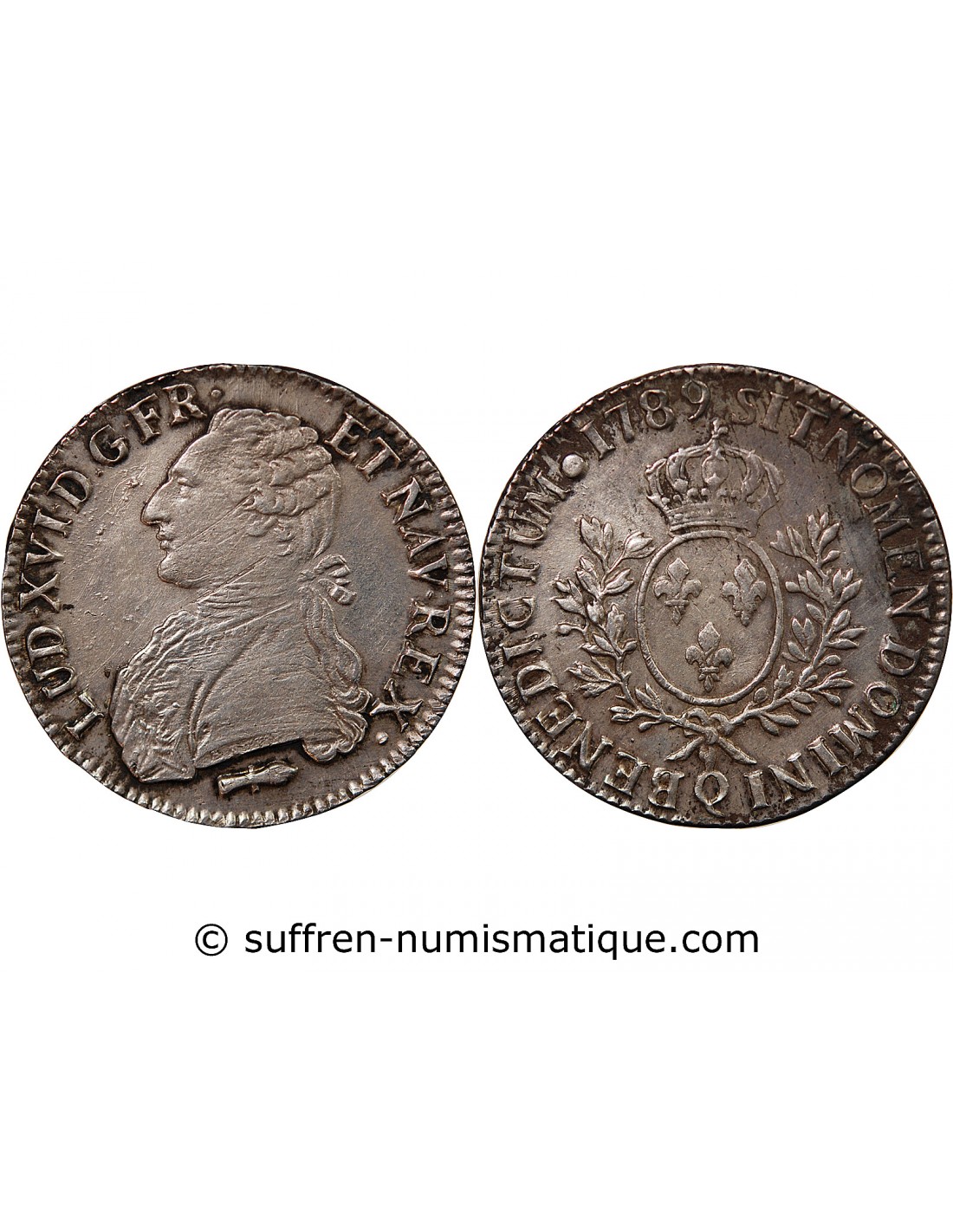 LOUIS XVI - ÉCU ARGENT AUX BRANCHES D'OLIVIER 1789 Q PERPIGNAN