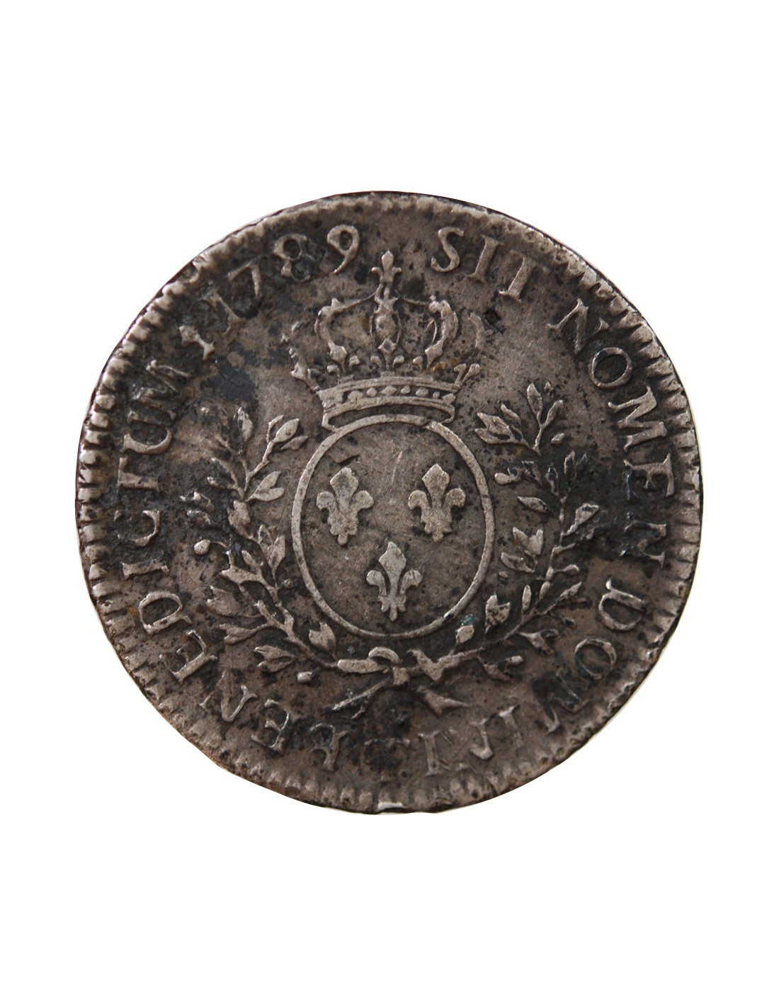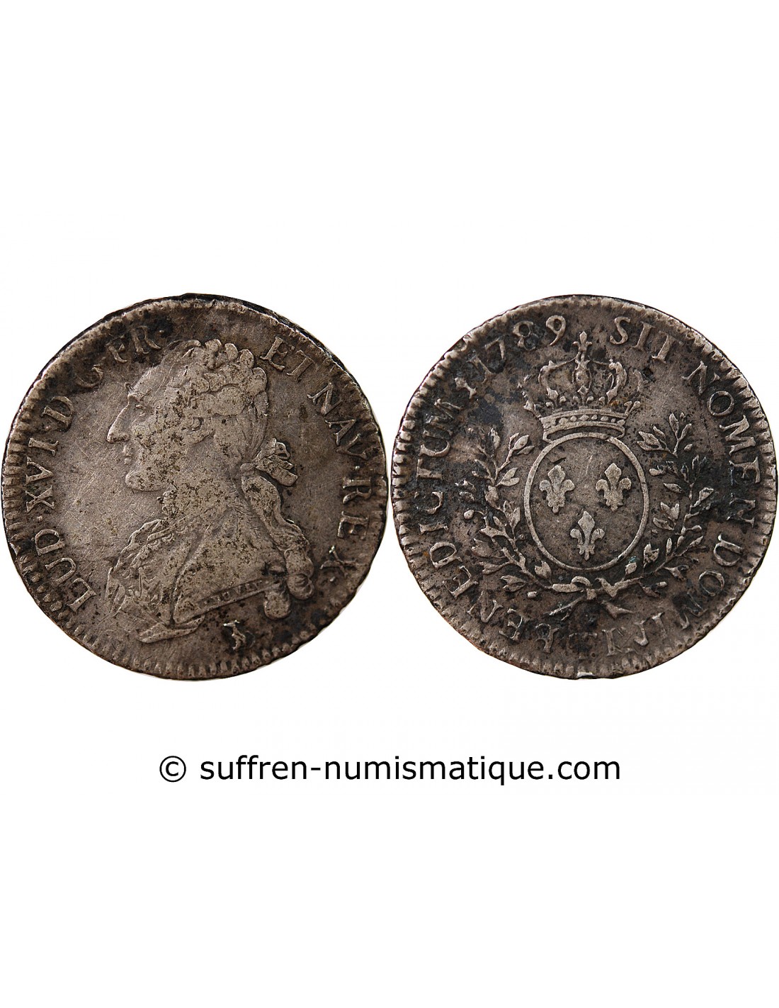 LOUIS XV - 1/2 ECU ARGENT AUX BRANCHES D'OLIVIER 1789 T NANTES - R3