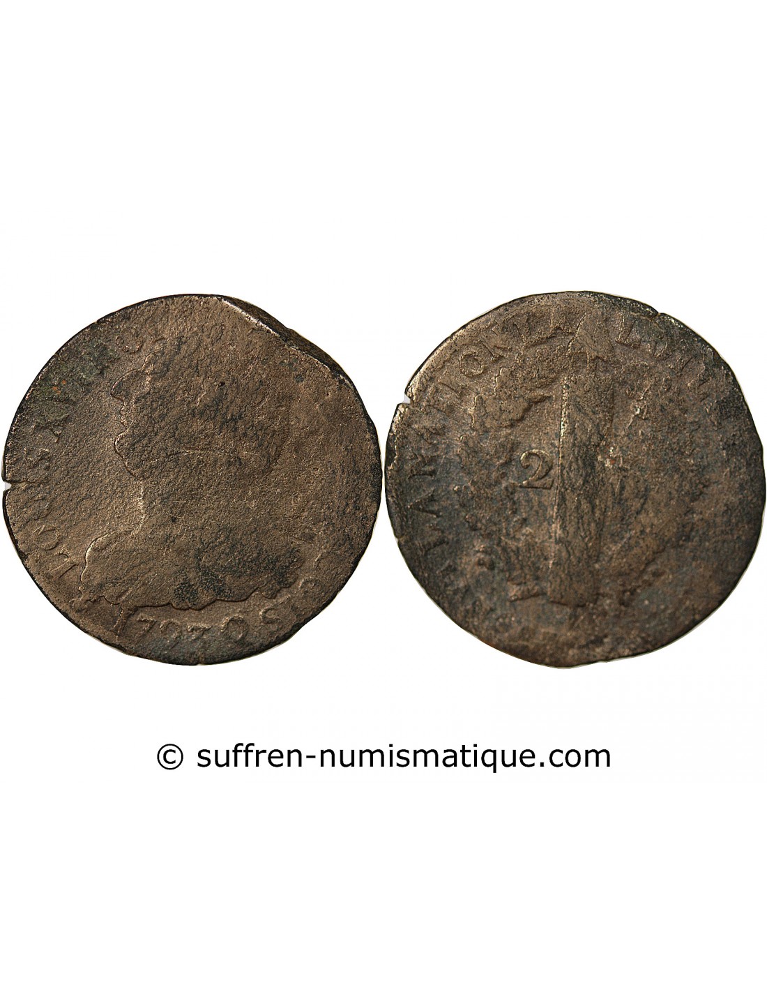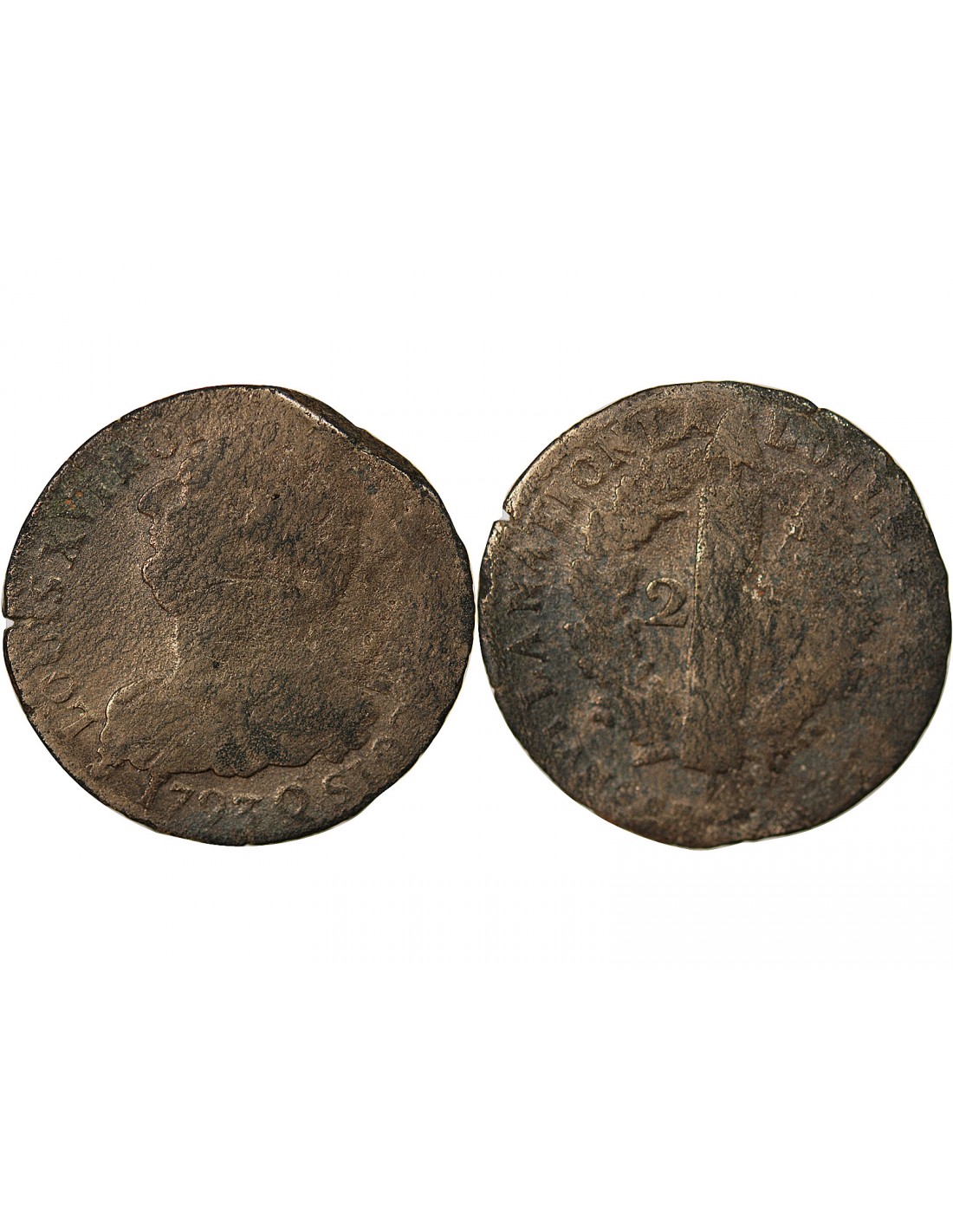 LOUIS XVI CONSTITUTION - 2 SOLS AU FAISCEAU 1793 Q PERPIGNAN