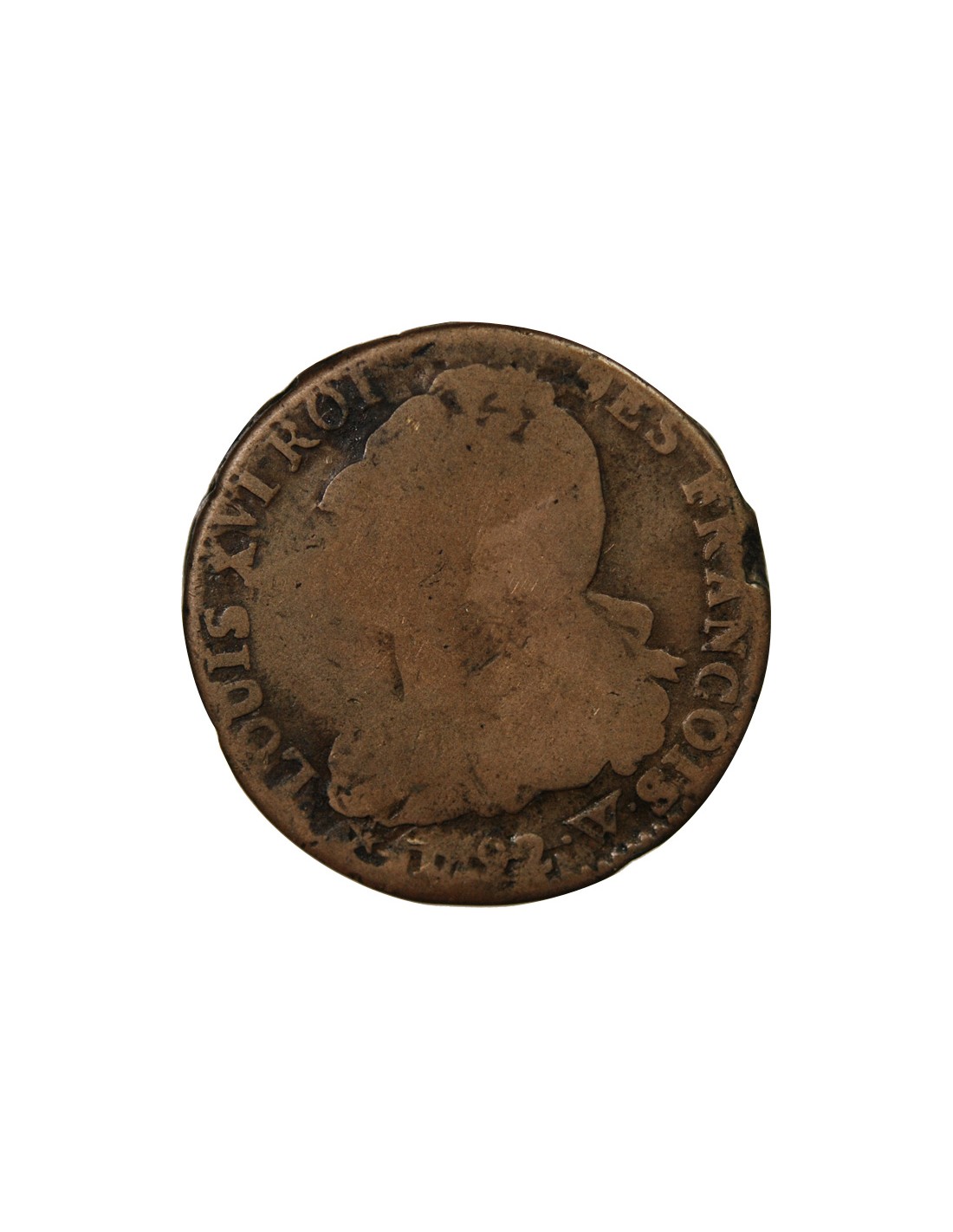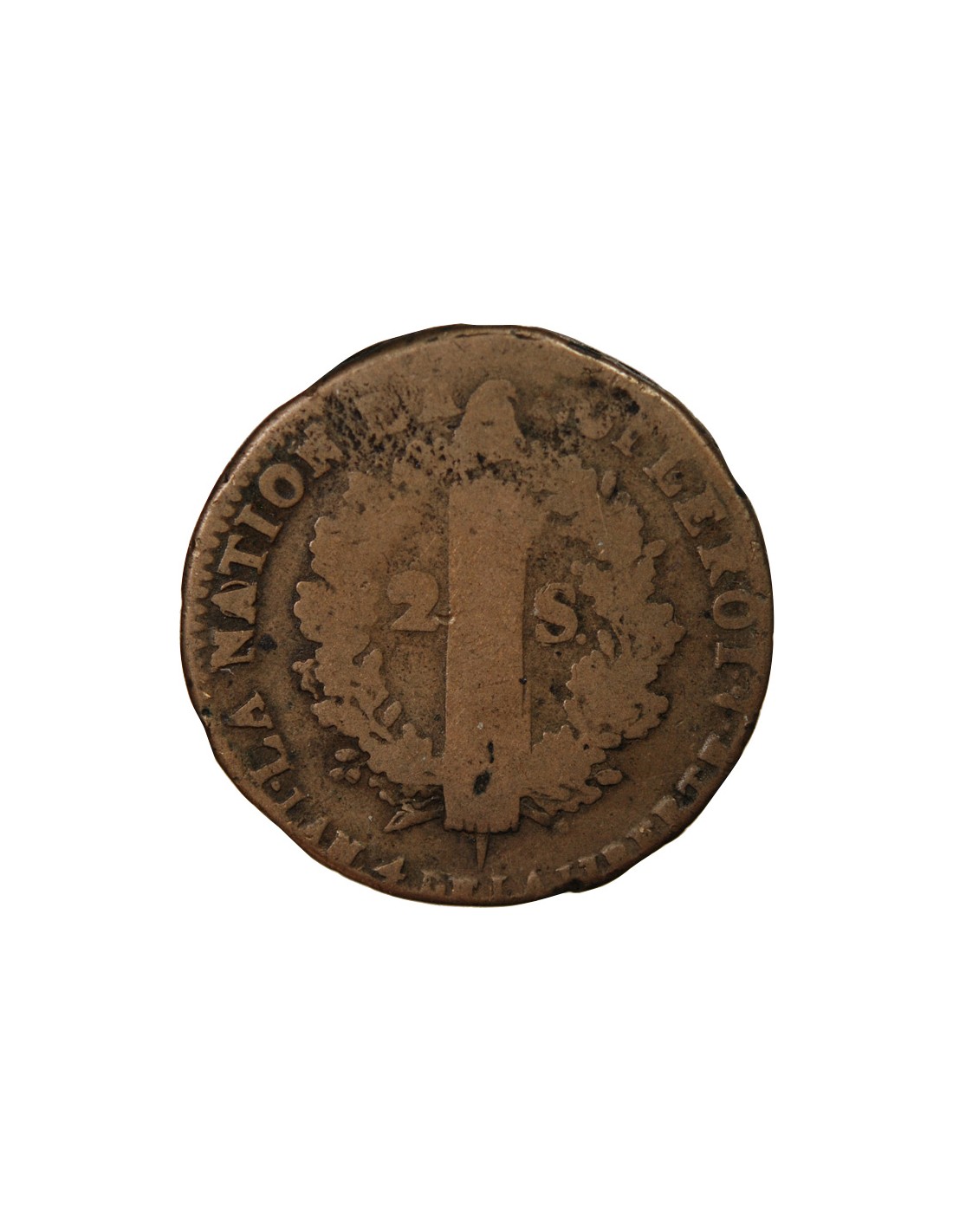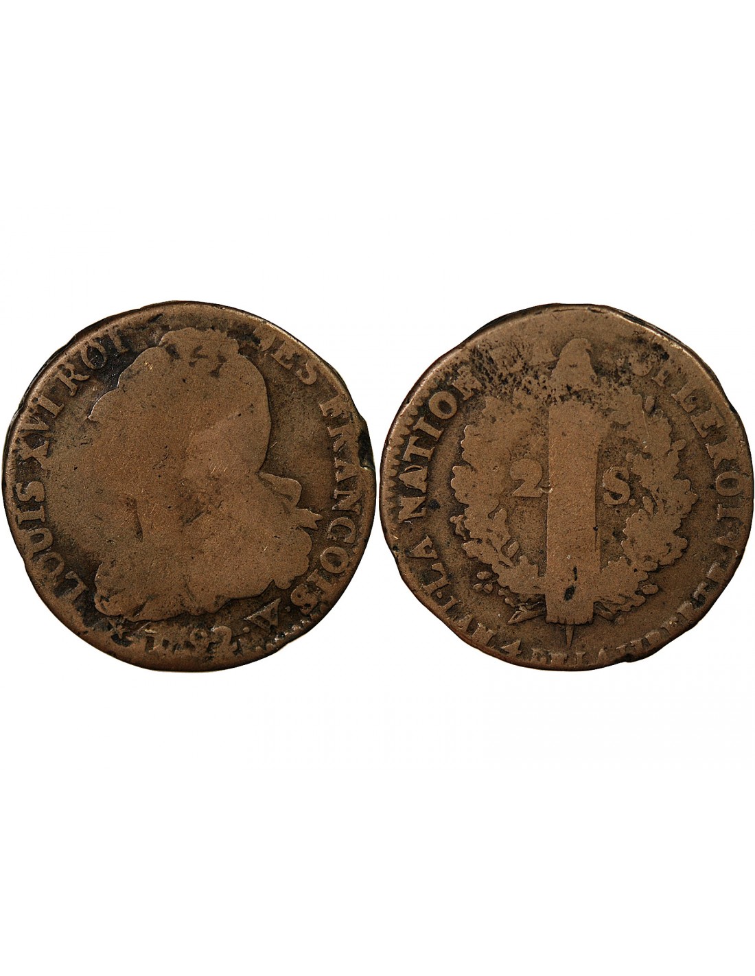LOUIS XVI, CONSTITUTION - 2 SOLS ROI DES FRANCOIS 1792 W LILLE